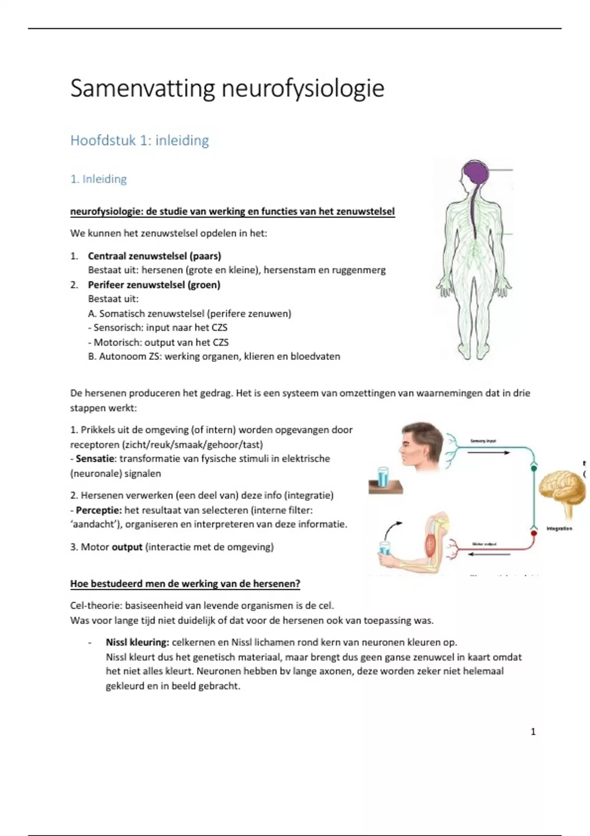 Volledige samenvatting van Neurofysiologie. Samenvatting bevat de volledige te kennen leerstof, neergeschreven aan de hand van de powerpoints en voorzien van afbeeldingen om de processen duidelijk weer te geven. Daarnaast is de samenvatting dusdanig gemaakt dat mogelijks aangegeven vragen er bij in zitten verwerkt. Behaald resultaat: 16/20.