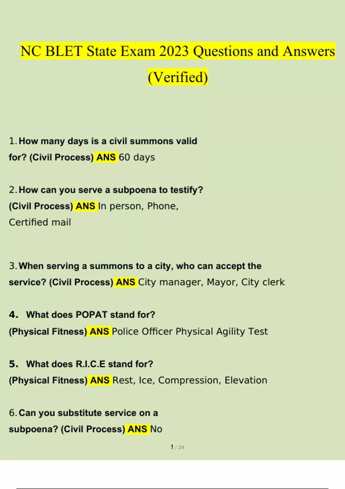 NC BLET State Exam Questions and Answers [] (Verified by Expert) NC BLET State Exam Questions and Answers [] (Verified by Expert)