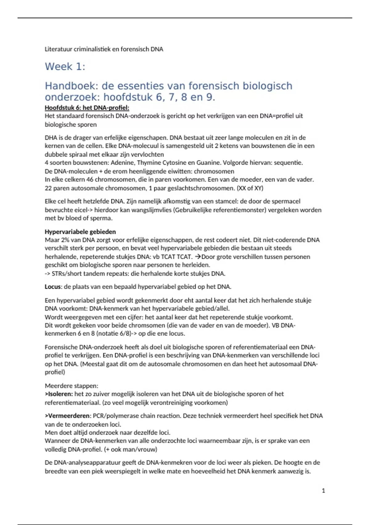 Forensische DNA-onderzoek heeft als doel uit biologische sporen of referentiemateriaal een DNA-