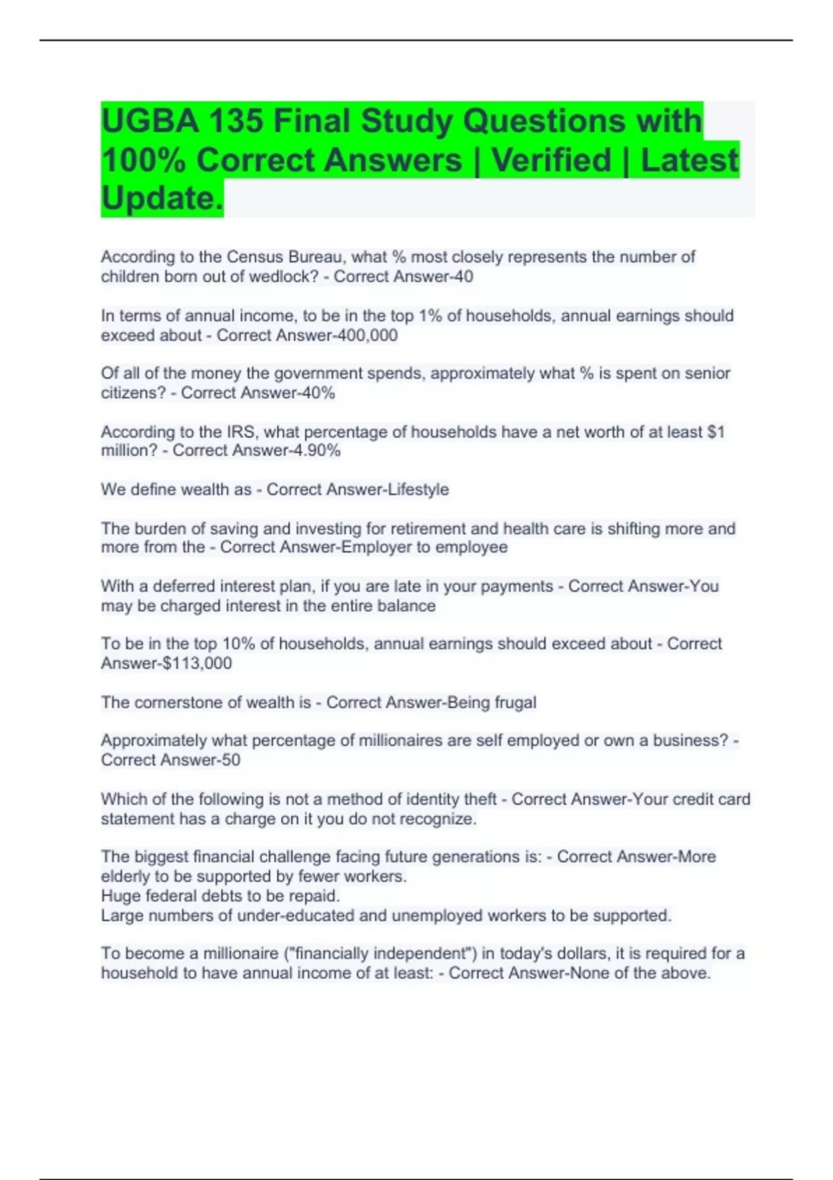UGBA 135 Final Study Questions with 100% Correct Answers | Verified | Latest Update.