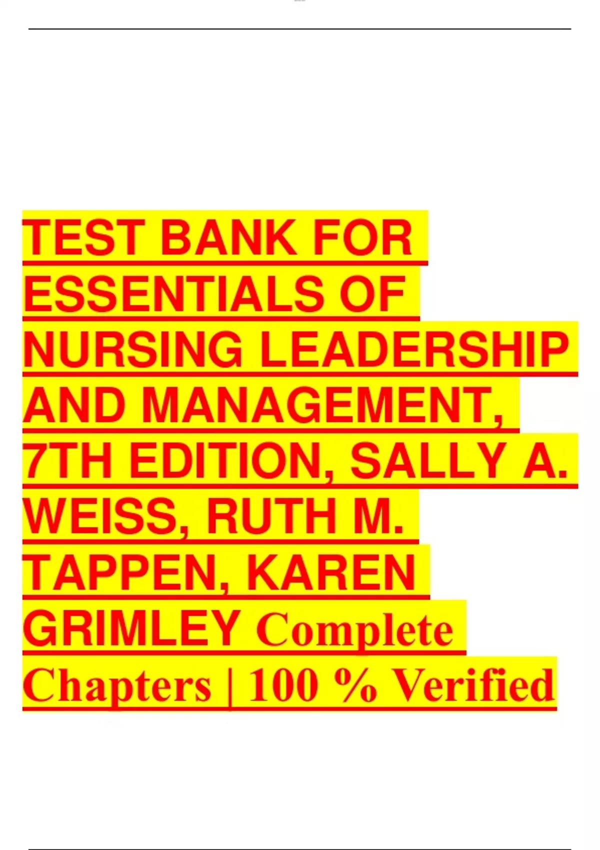 Test Bank for Essentials of Nursing Leadership and Management 7th Edition Weiss