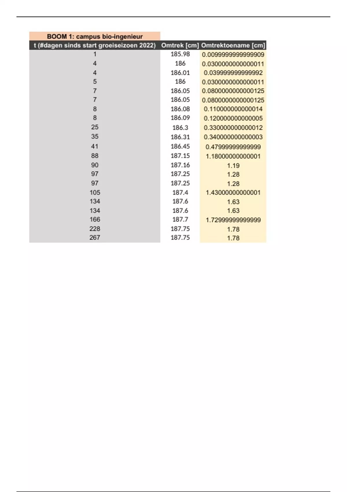 t (#dagen sinds start groeiseizoen 2022) Omtrek [cm] Omtrektoename [cm]