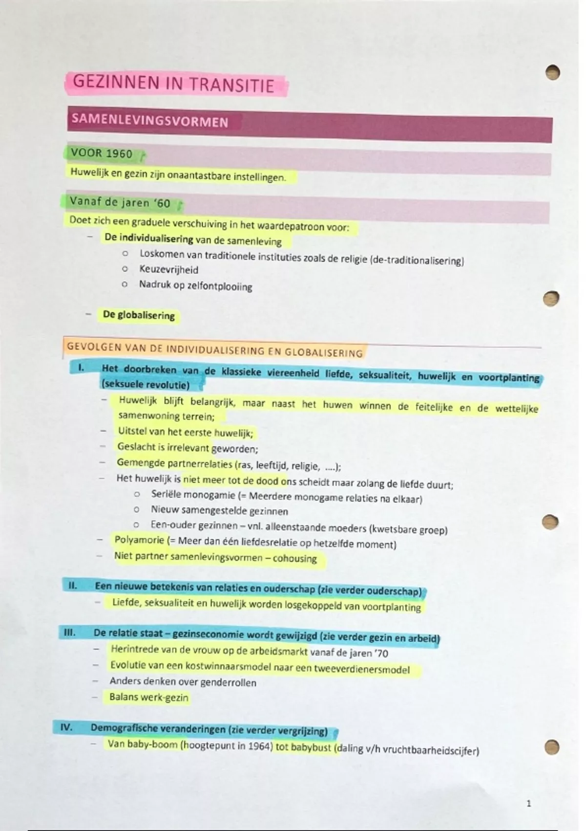 Samenvatting 'Gezinnen in transitie' - Gezinnen in Transitie (93SMW3110)