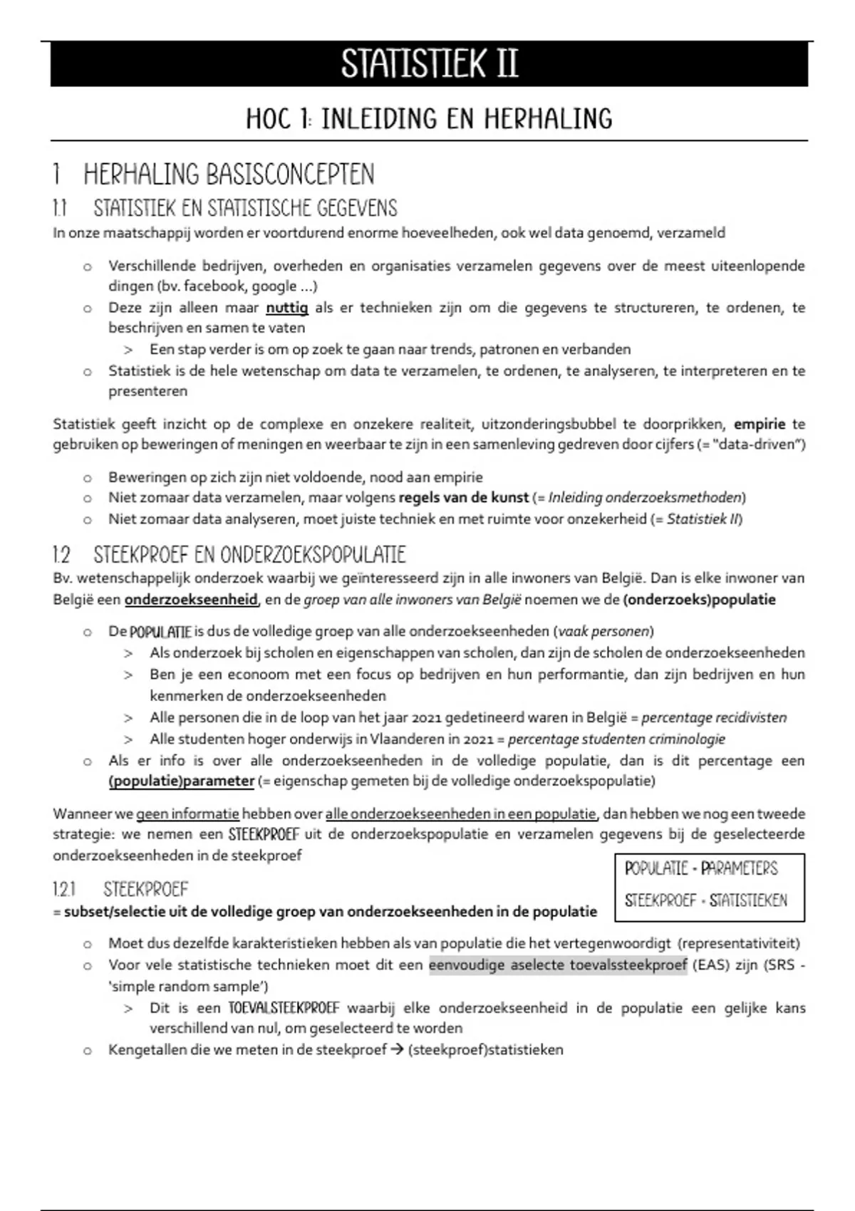 Samenvatting - Statistiek II voor de Sociale Wetenschappen (000097)