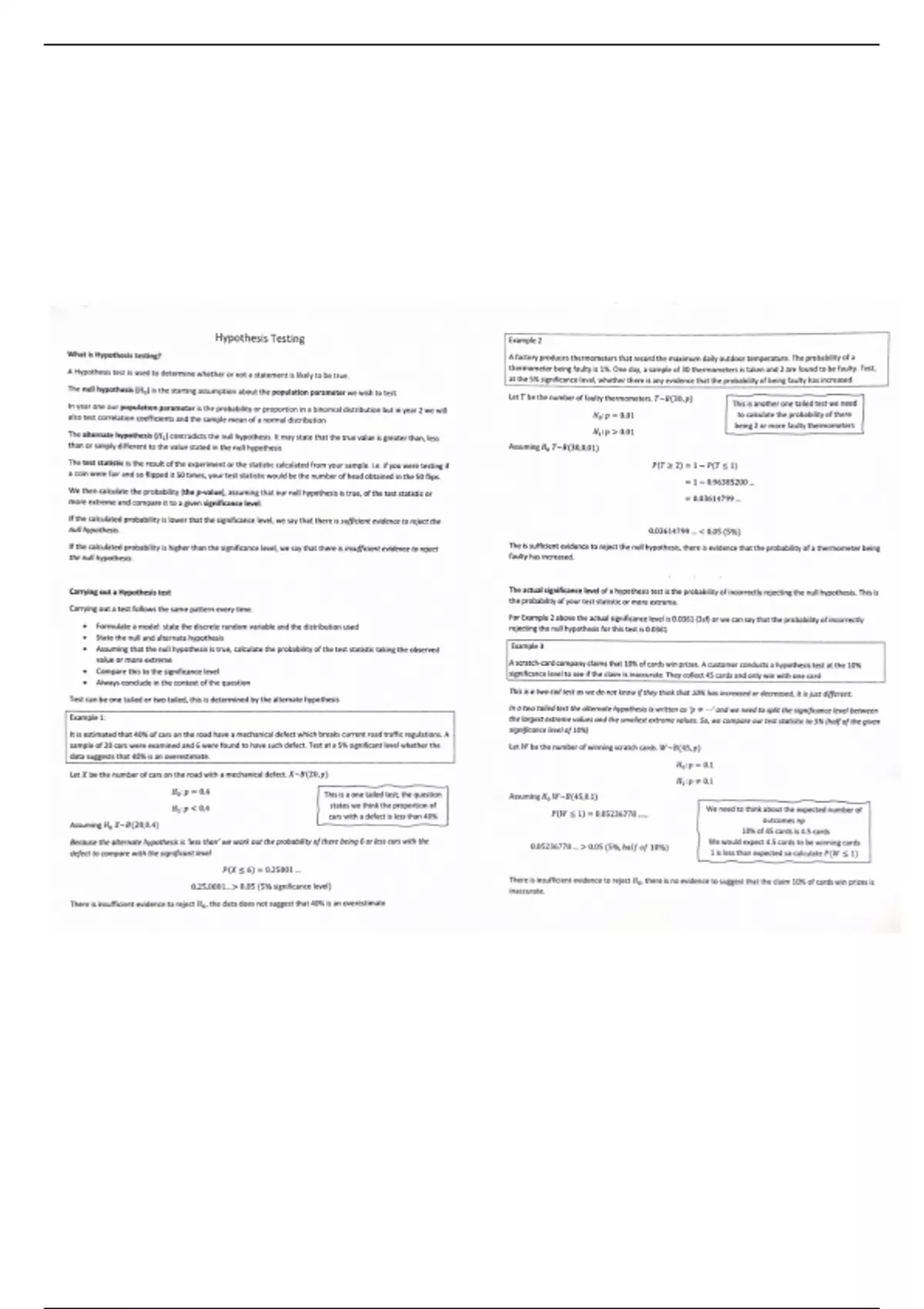 Summary: A-level Statistics - Hypothesis Testing summary and revision