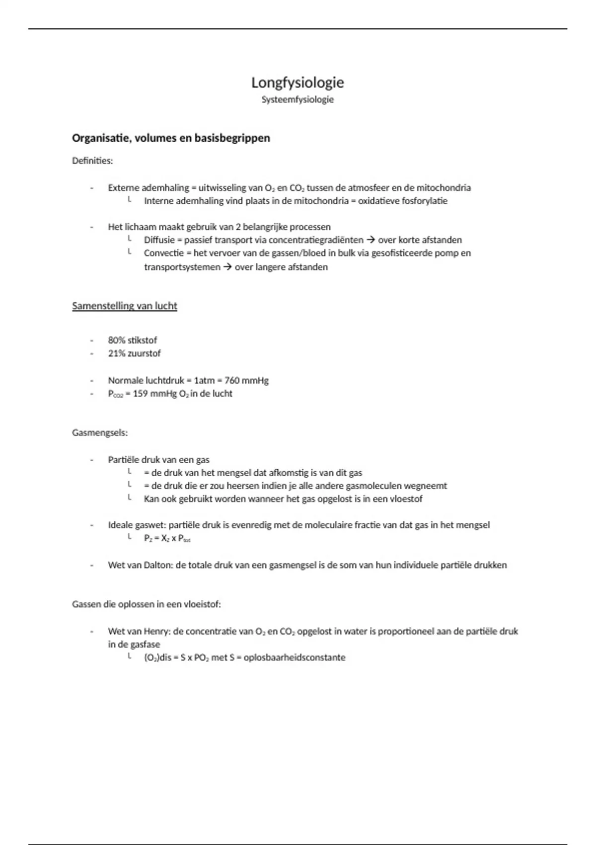 - Wet van Henry: de concentratie van O2 en CO2 opgelost in water is proportioneel aan de partiële druk