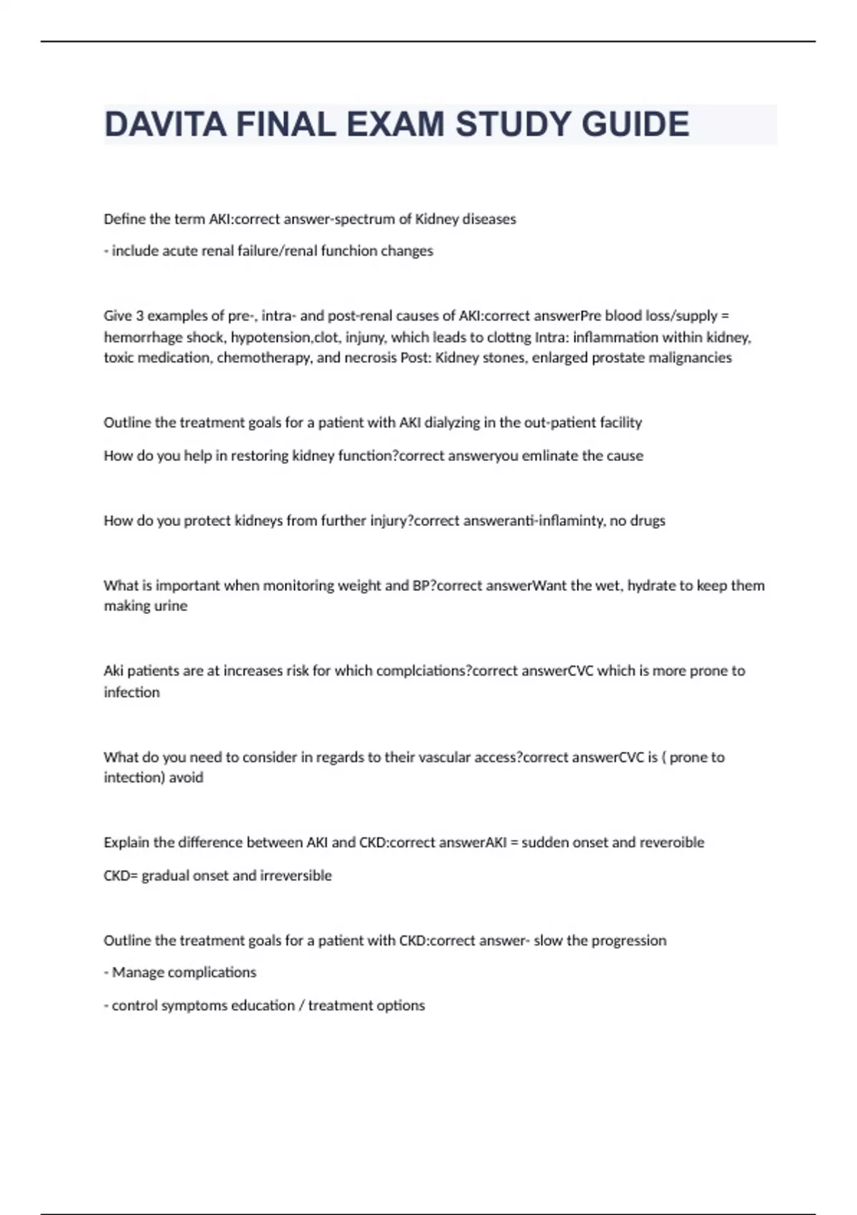 DAVITA FINAL EXAM STUDY GUIDE QUESTIONS WITH CORRECT ANSWERS