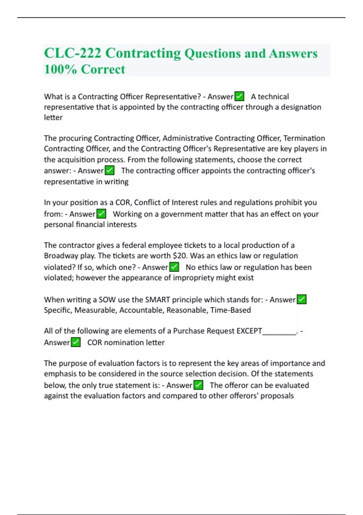 Contracting officer representative BUNDLED Exam Questions and Answers with Complete Solutions