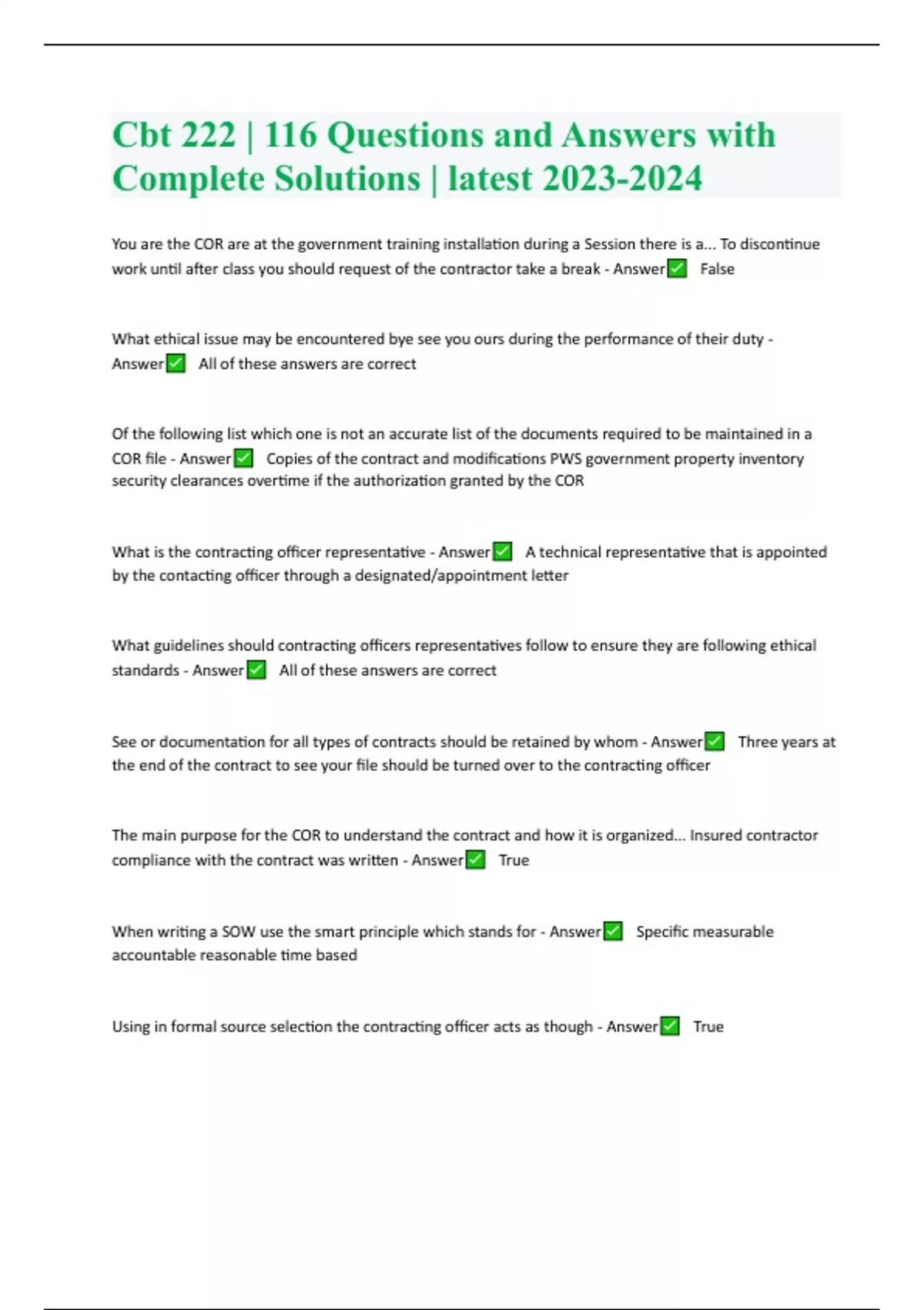 Contracting officer representative BUNDLED Exam Questions and Answers with Complete Solutions