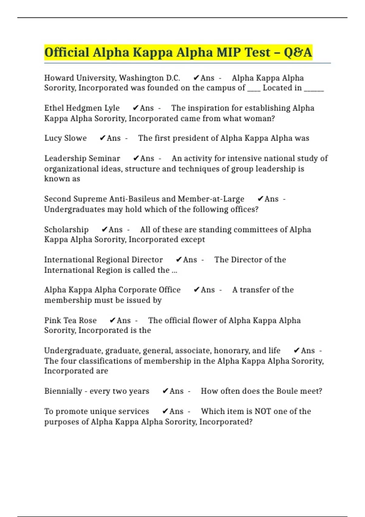 Official Alpha Kappa Alpha MIP Test – Q&A