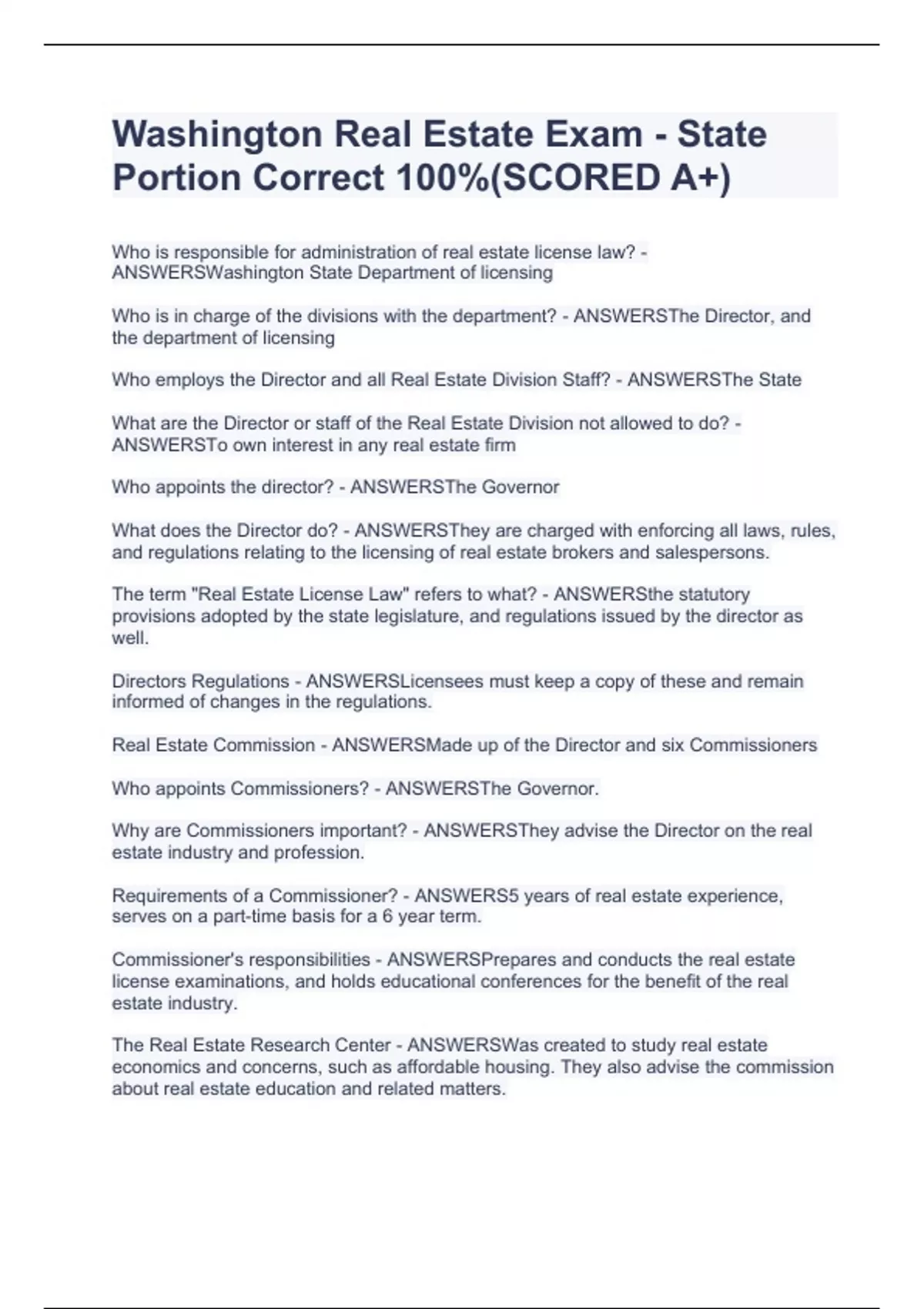 Washington Real Estate Exam - State Portion Correct 100%(SCORED A+)
