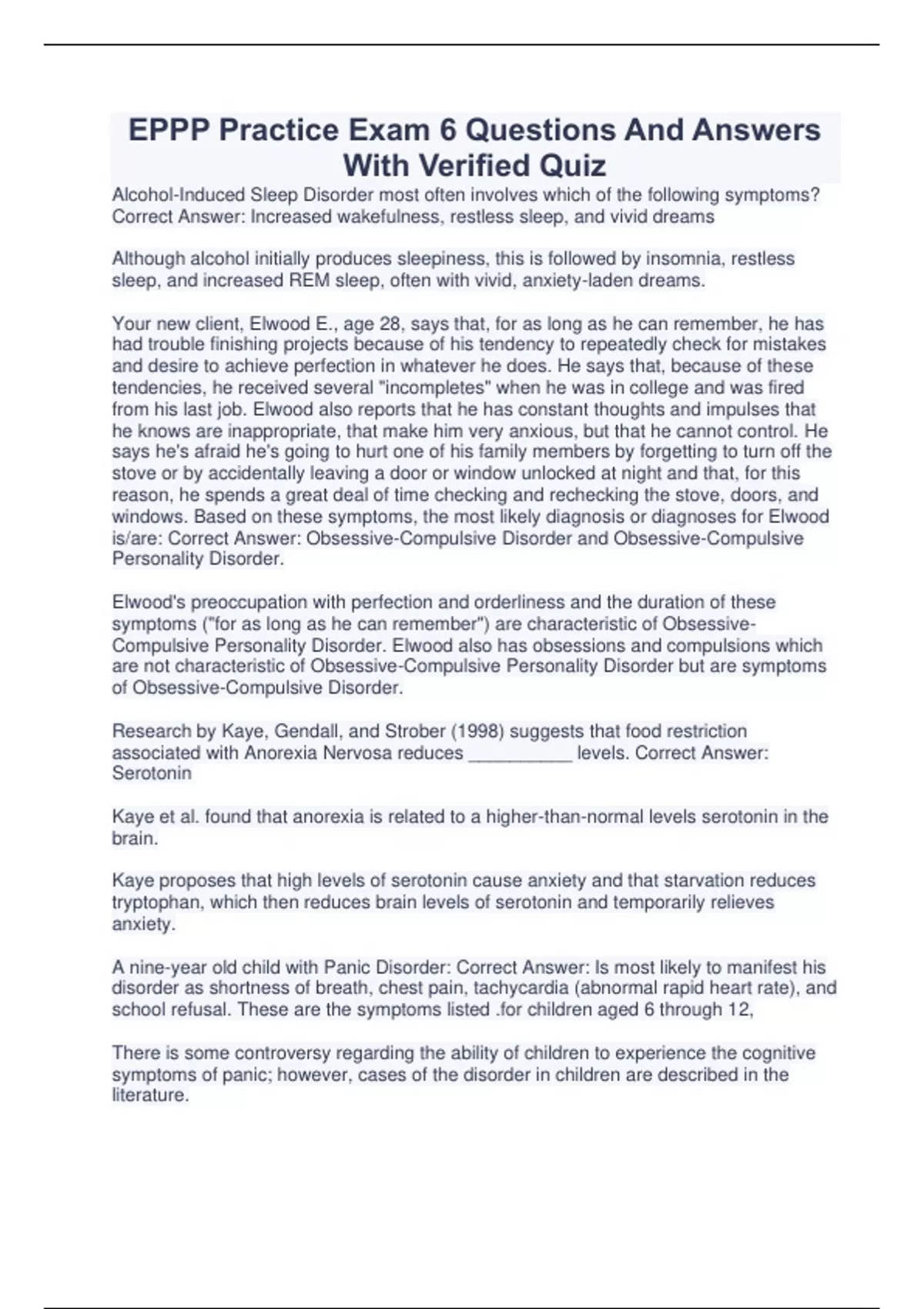 EPPP Practice Exam 6 Questions And Answers With Verified Quiz