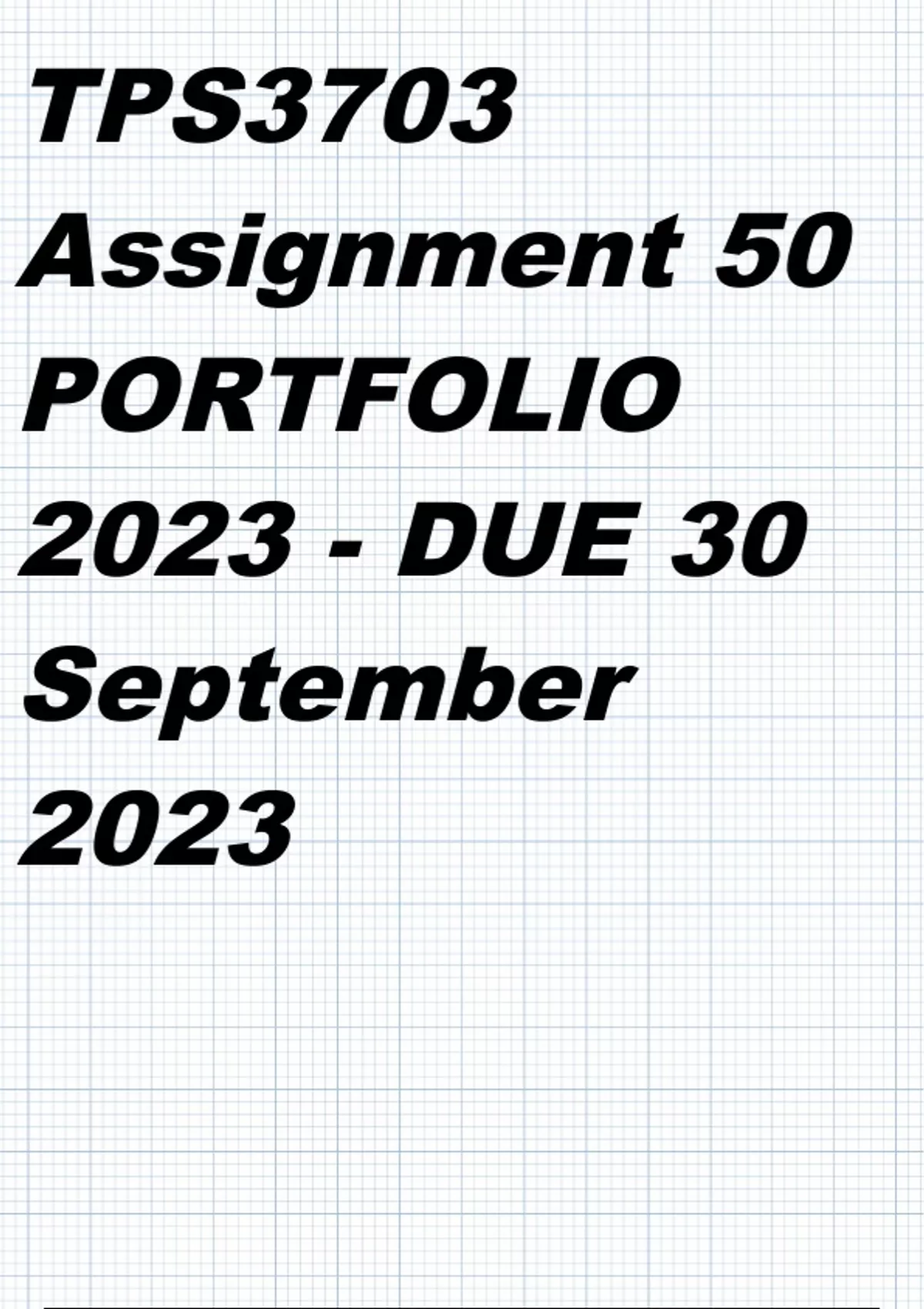 TPS3703 Assignment 50 SAMPLE PORTFOLIO 2023 - DUE 30 September 2023