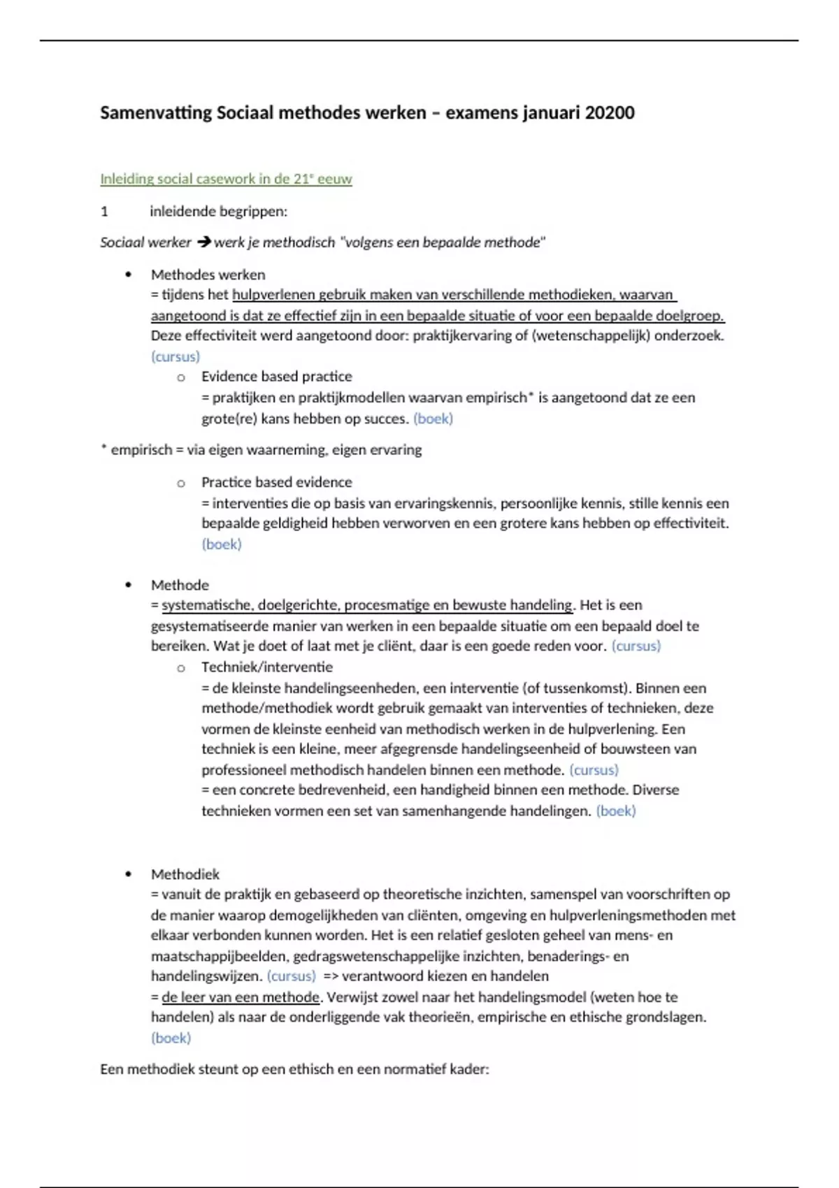 Samenvatting Sociaal methodes werken – examens januari 20200