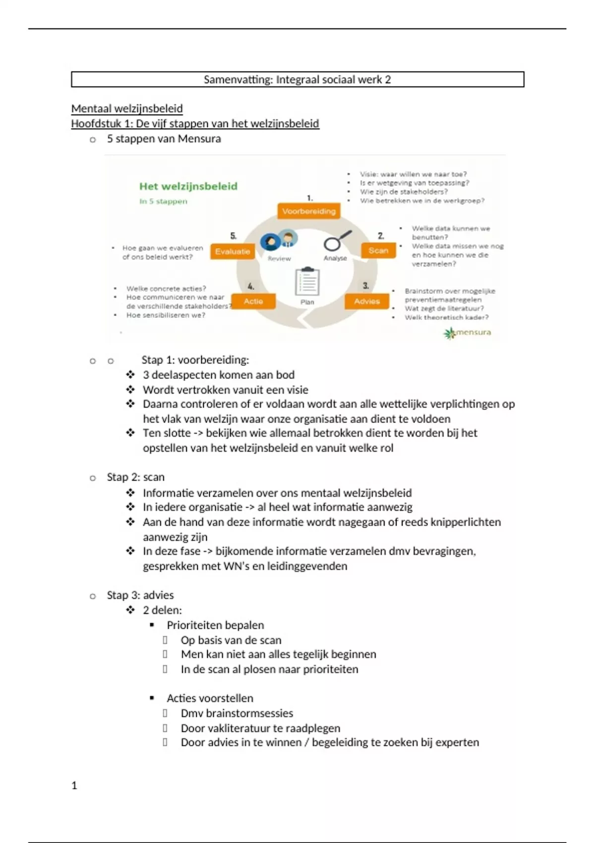 Hoofdstuk 1: De vijf stappen van het welzijnsbeleid