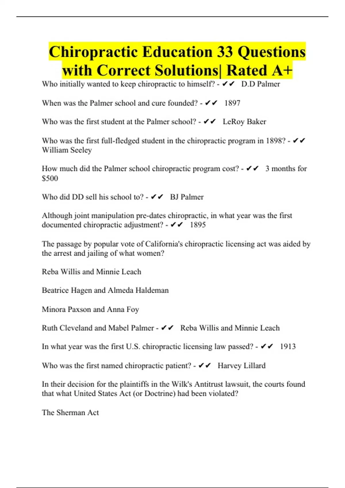 Chiropractic Education 33 Questions with Correct Solutions| Rated A+