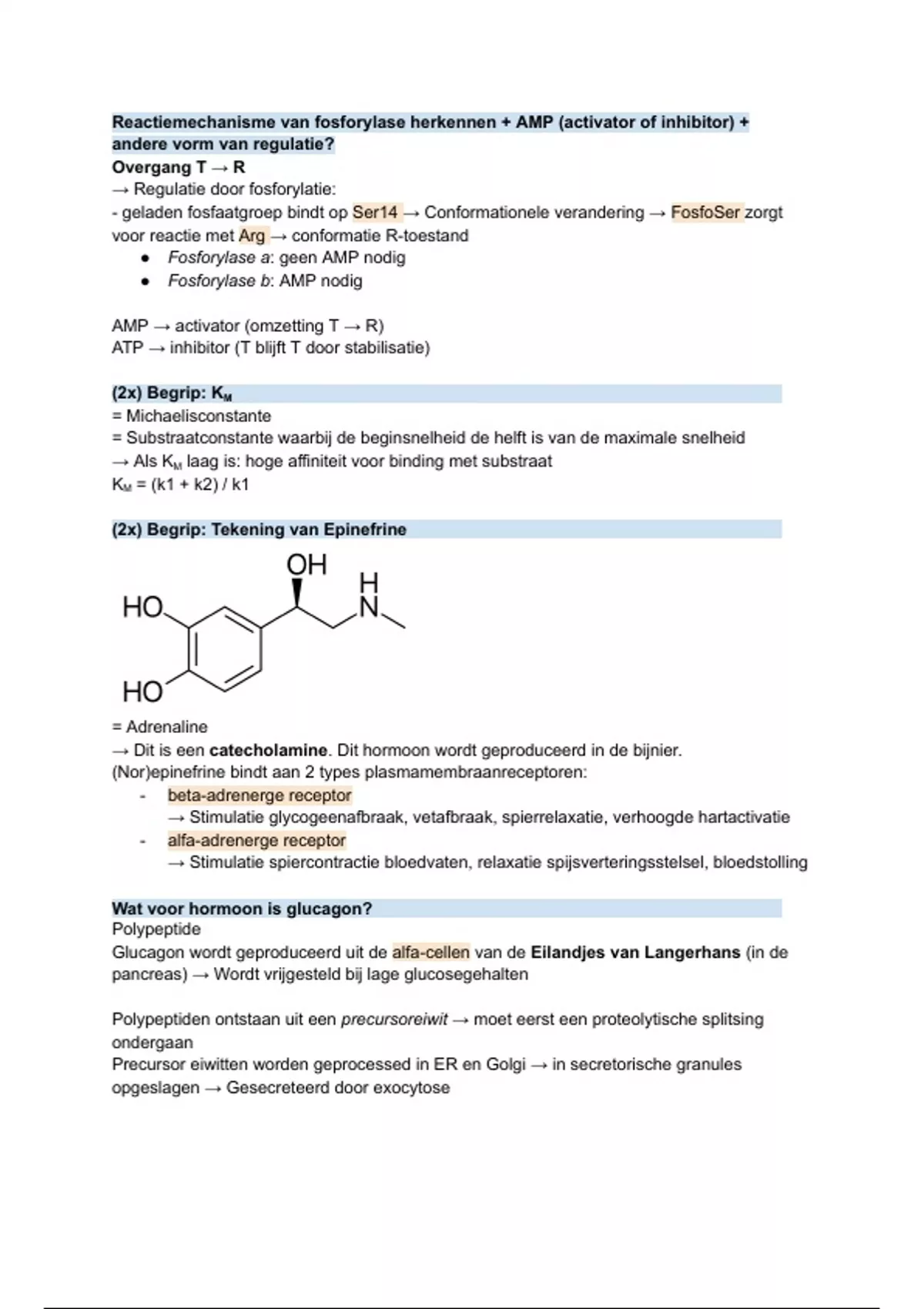 → Stimulatie glycogeenafbraak, vetafbraak, spierrelaxatie, verhoogde hartactivatie
