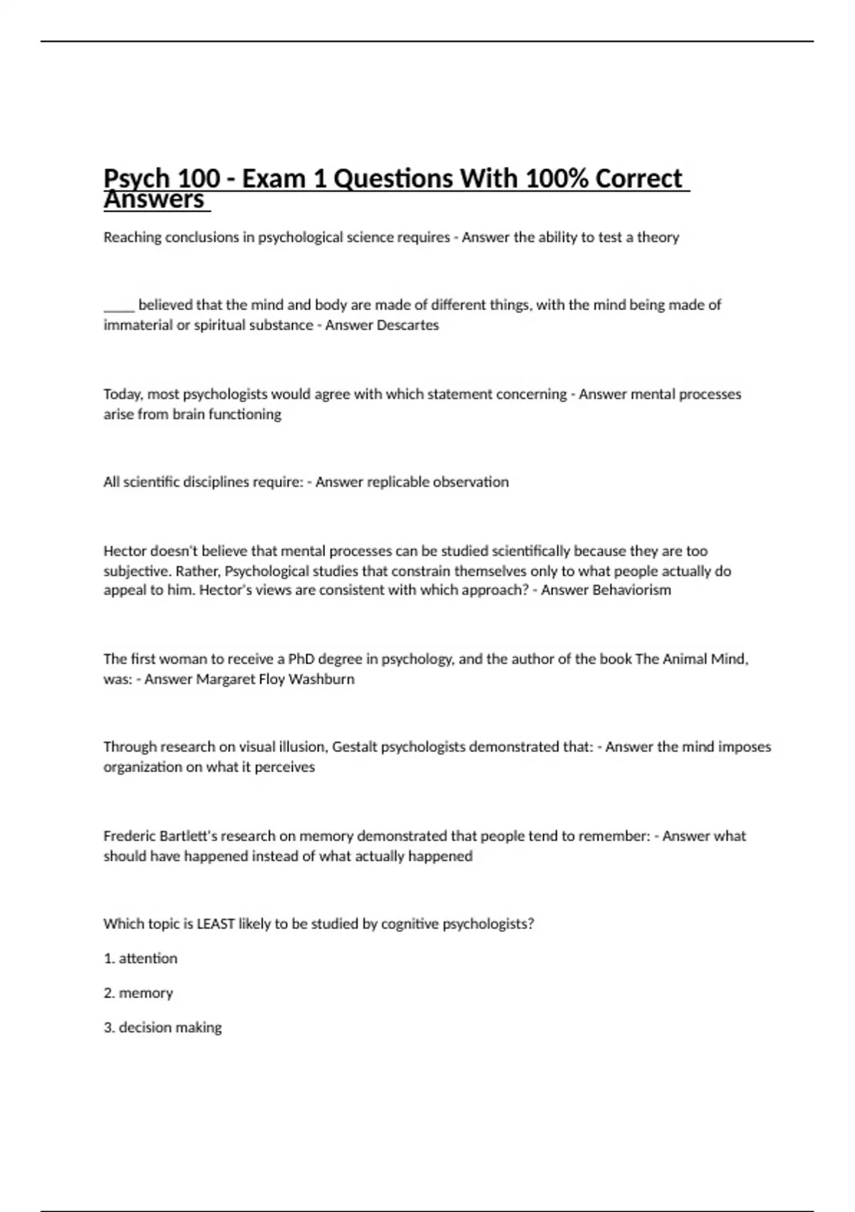 psych 100 exam 1 questions with 100 correct ans
