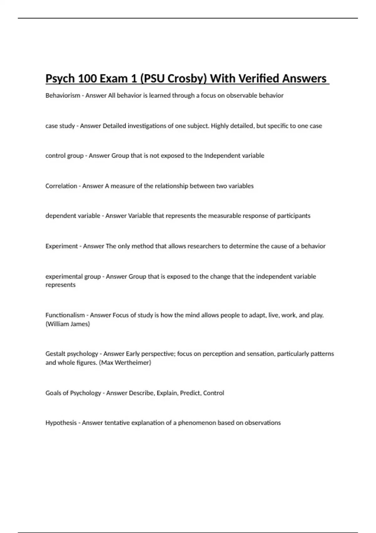 psych 100 exam 1 psu crosby with verified answer