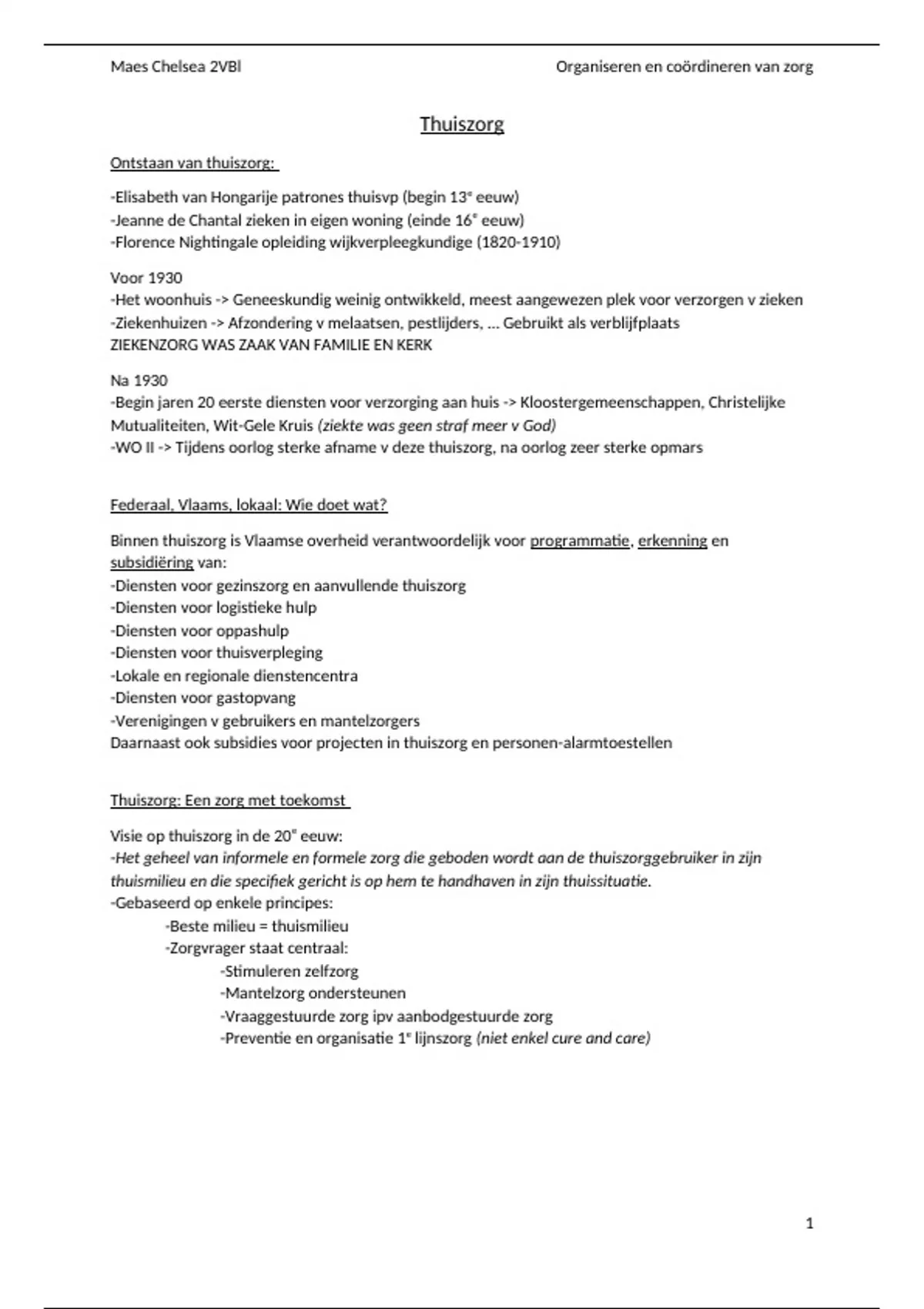 Maes Chelsea 2VBl Organiseren en coördineren van zorg