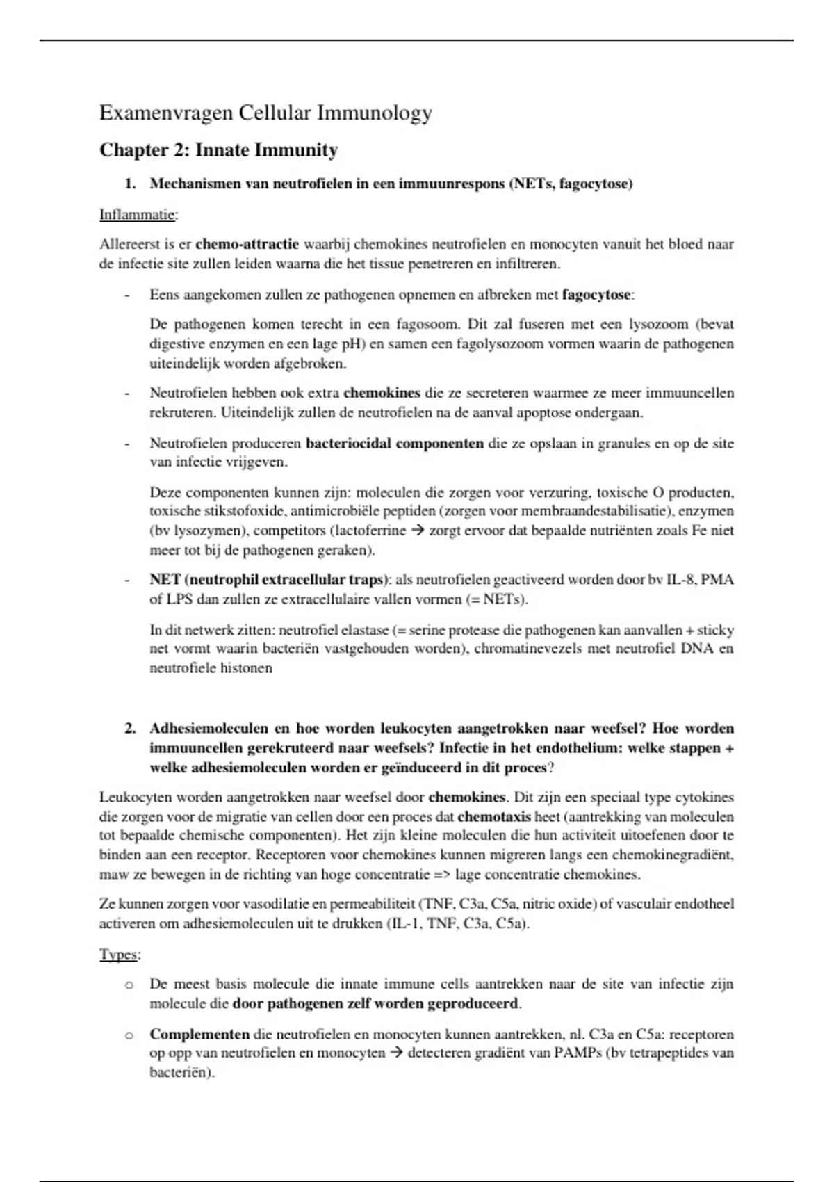 Samenvatting Oud-examenvragen Cellular Immunology - Geert Raes