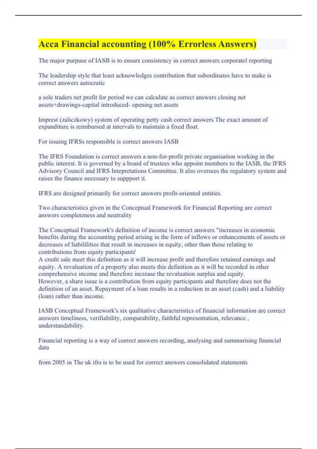 Acca Financial accounting (100% Errorless Answers)