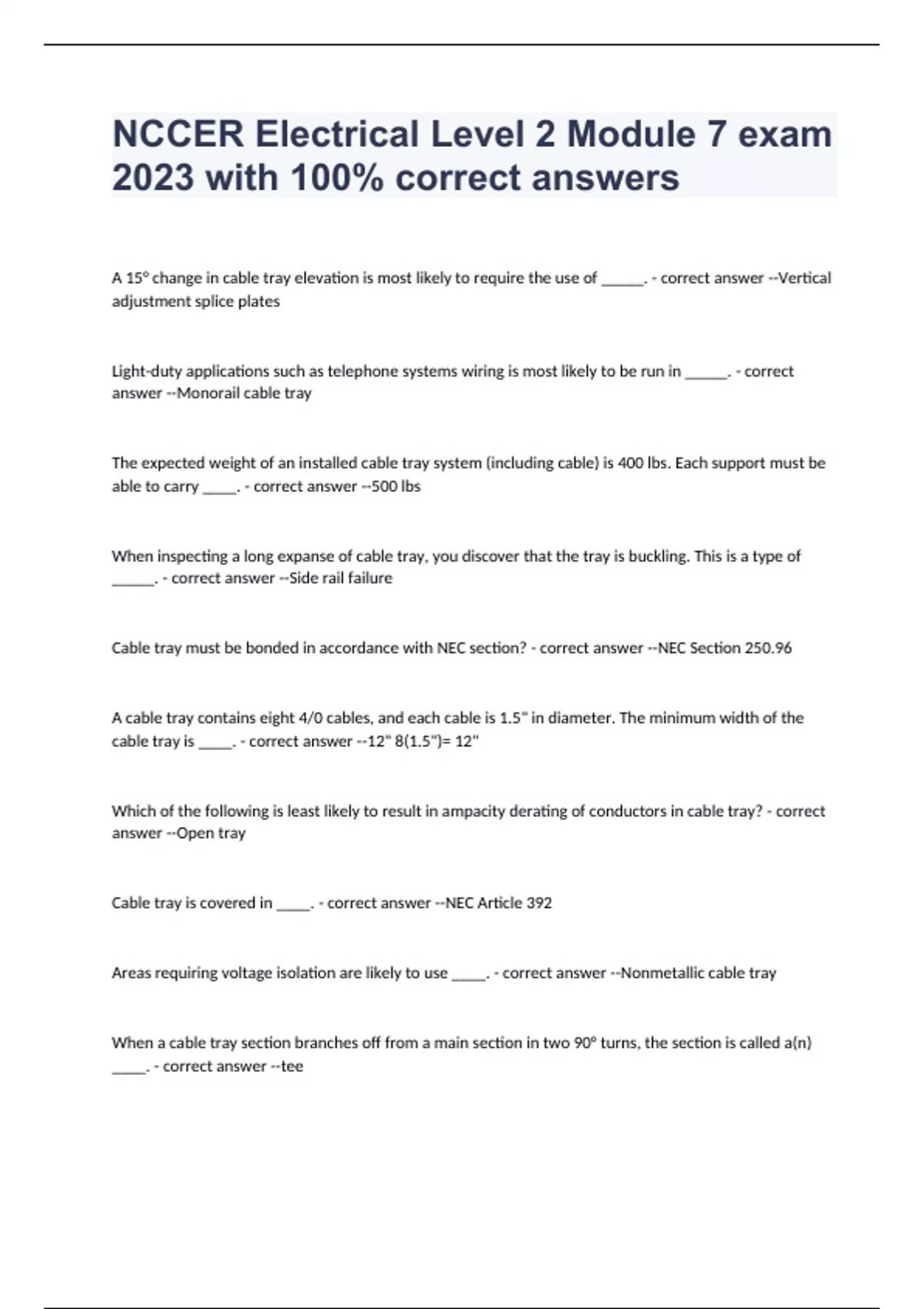 NCCER Electrical Level 2 Module 7 exam 2023 with 100% correct answers