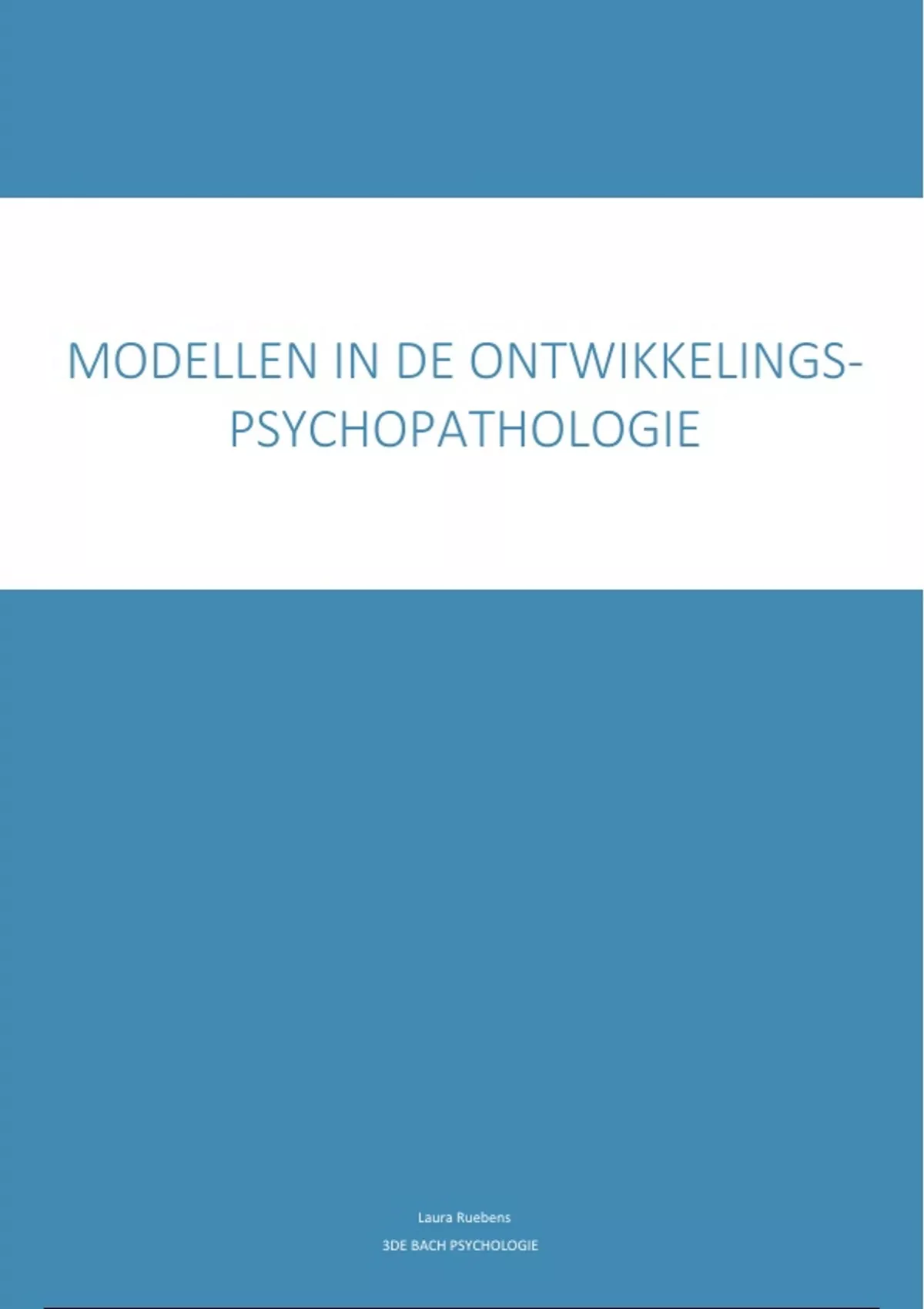 Samenvatting Modellen in de Ontwikkelingspsychopathologie