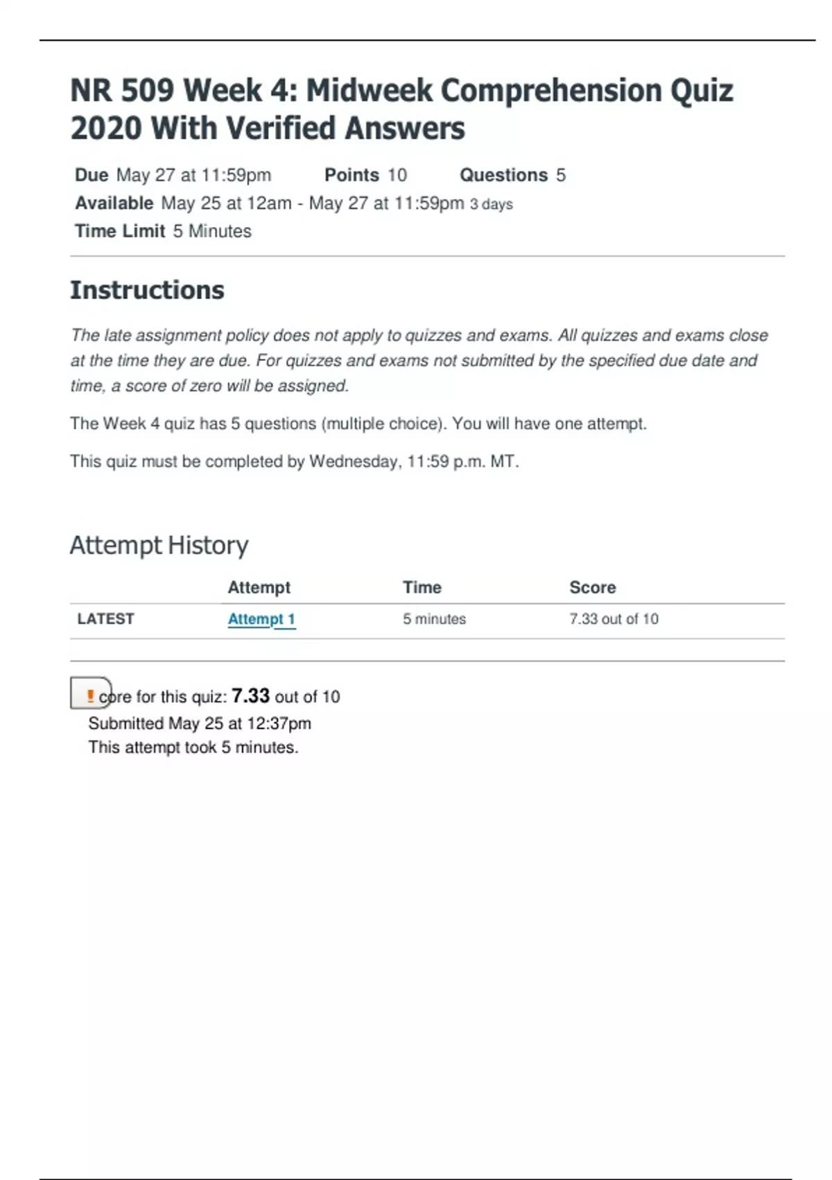 LATEST Attempt 1 5 minutes 7.33 out of 10