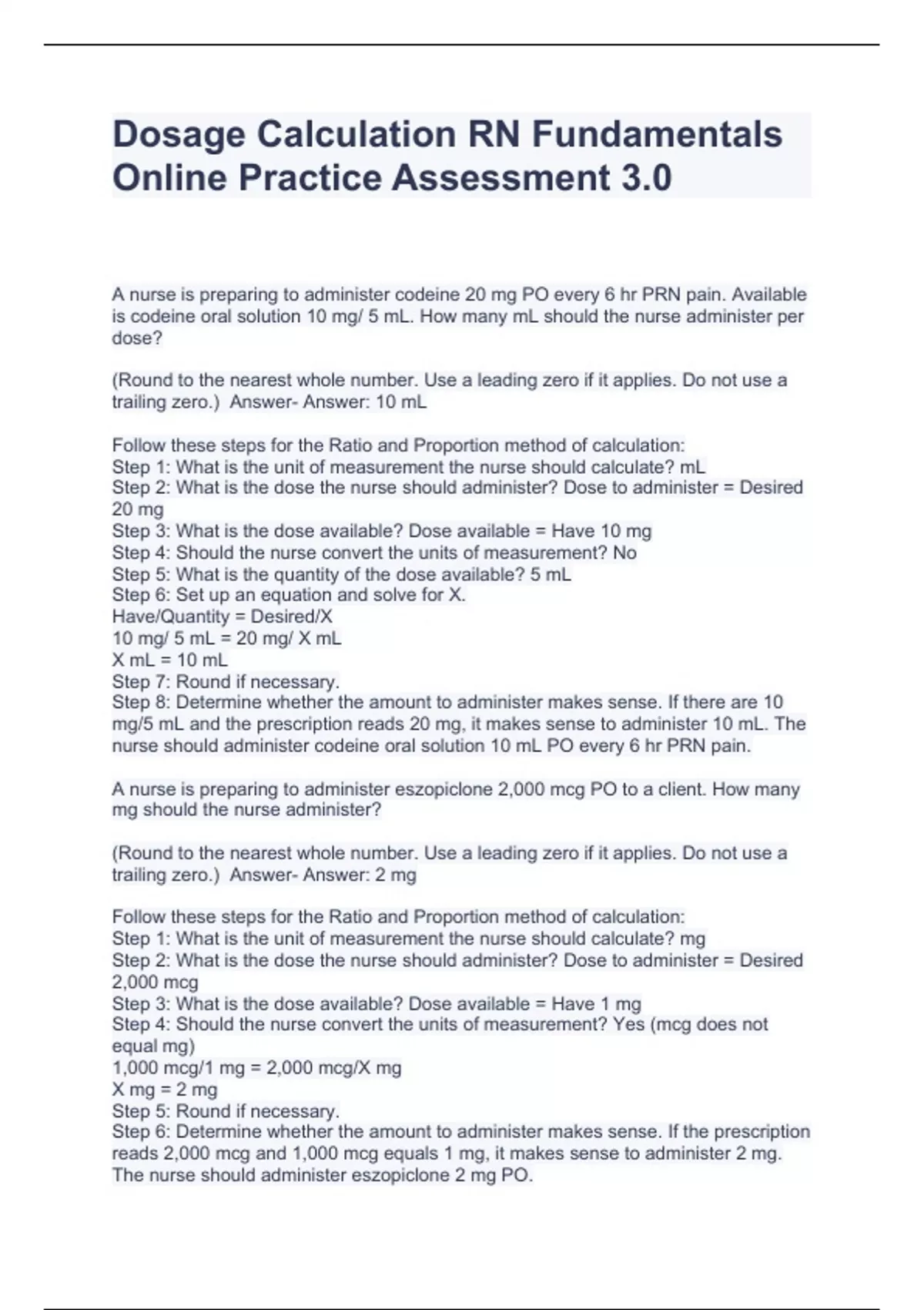 Dosage Calculation RN Fundamentals Online Practice Assessment 3.0