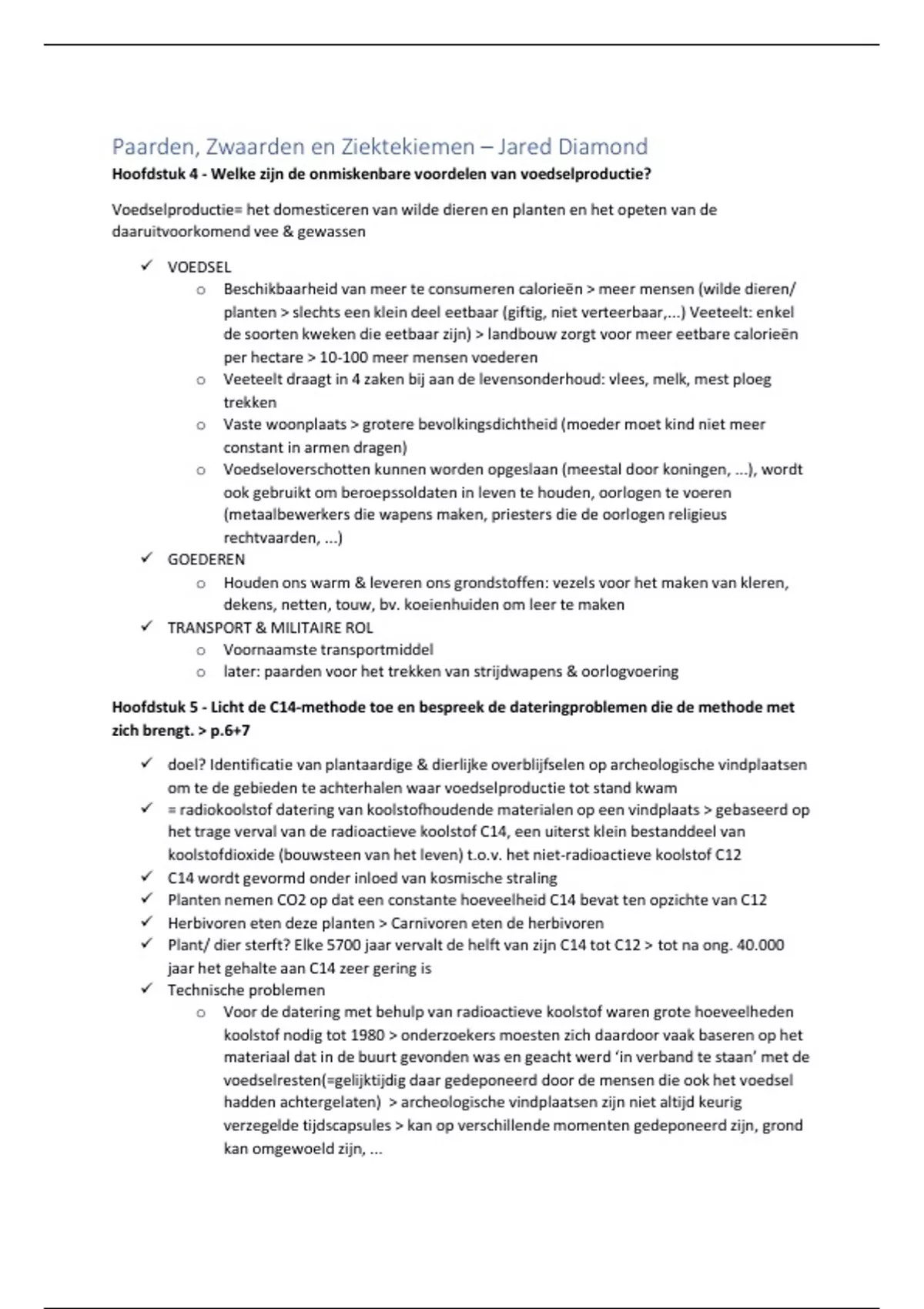 Samenvatting Paarden zwaarden ziektekiemen Jared Diamond