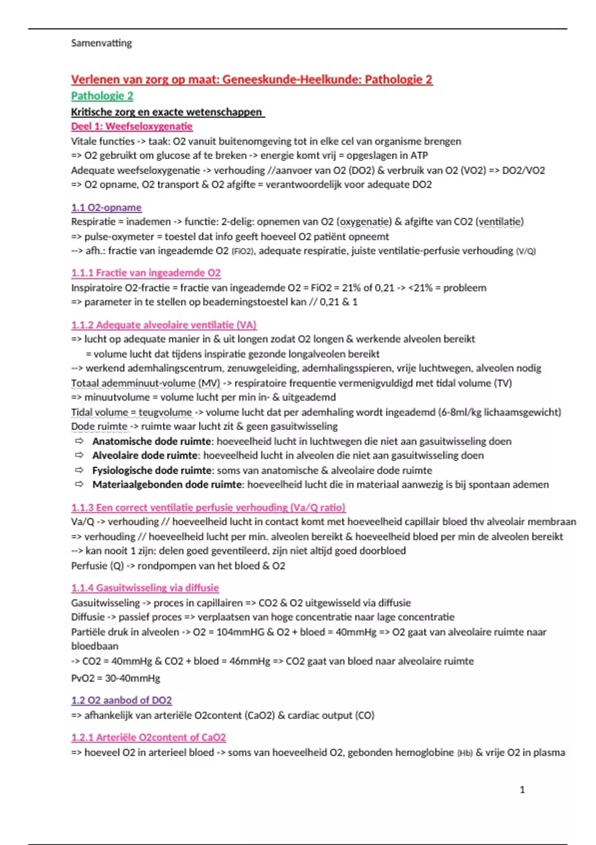 Samenvatting - VZOM: Pathologie 2 - Klinische zorg