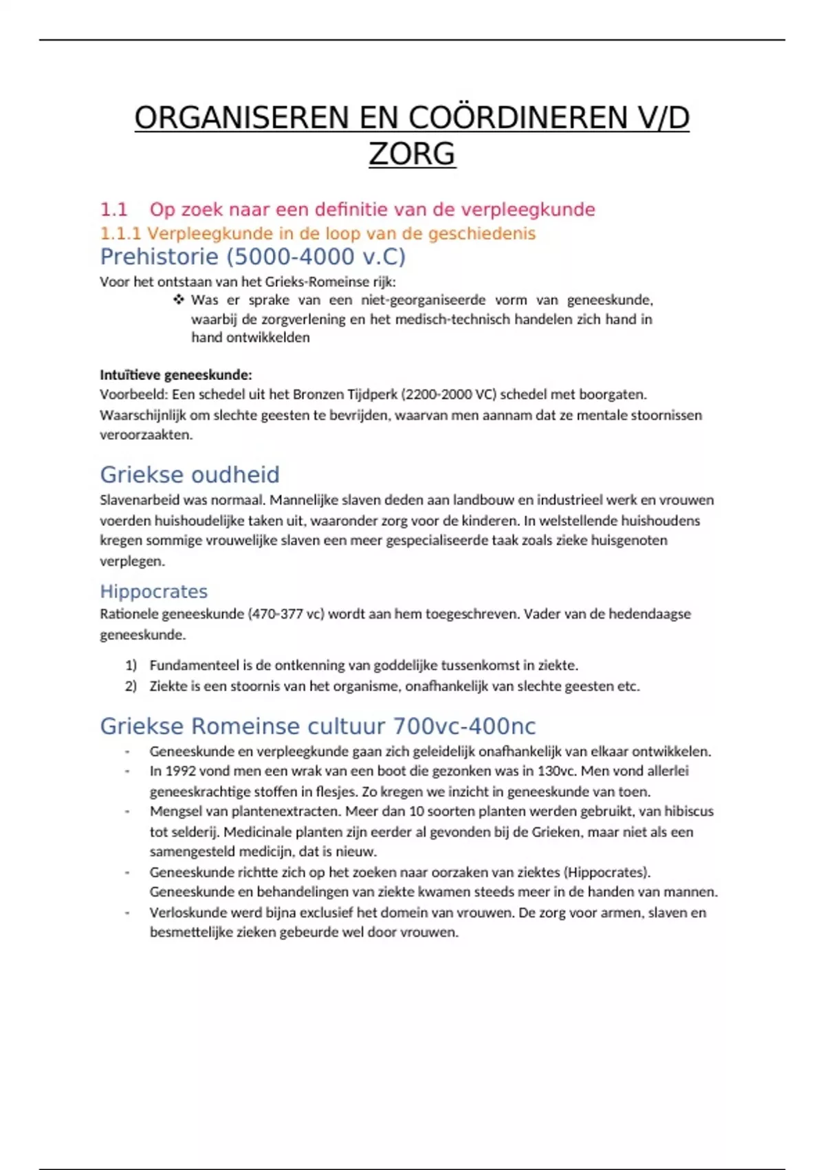 1.1.1 Verpleegkunde in de loop van de geschiedenis
