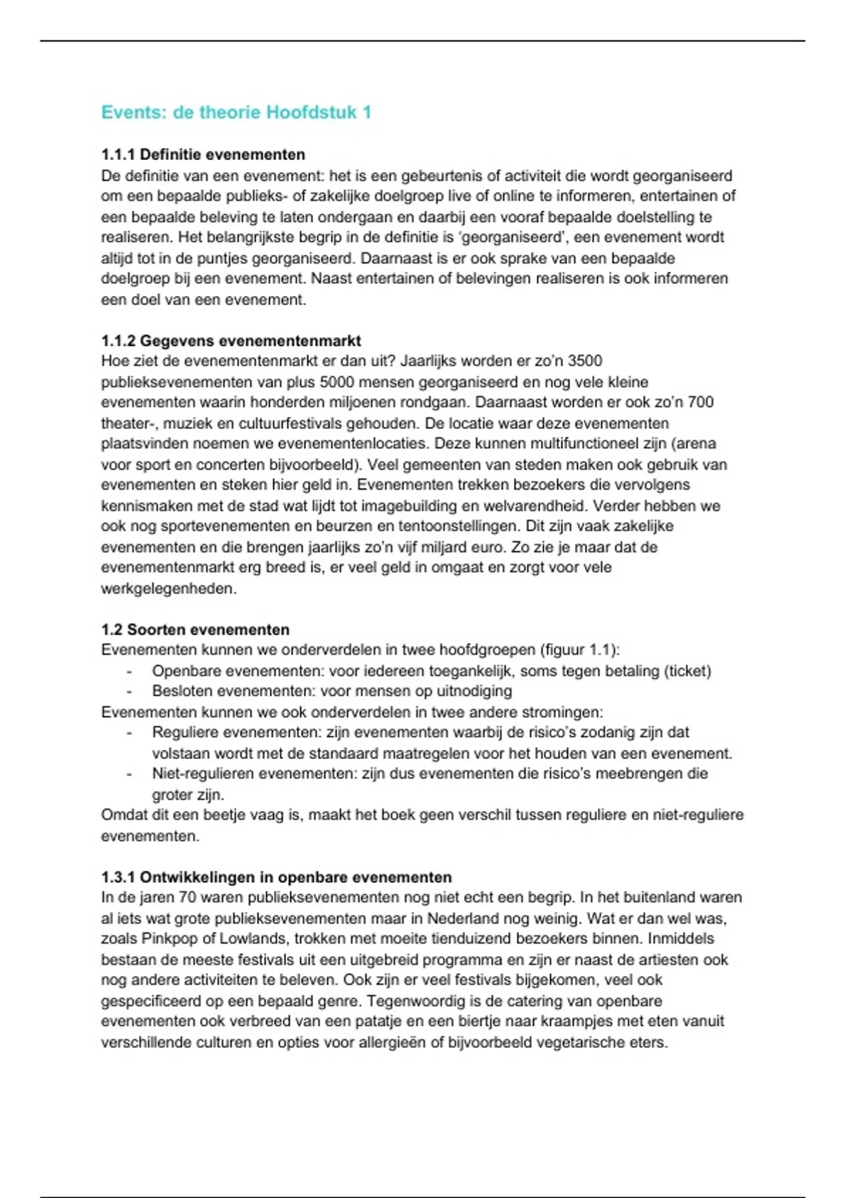 Samenvatting H1, 2, 8, 9, 10, 11, 12, 13, 14, 16, 17 Basisboek Events
