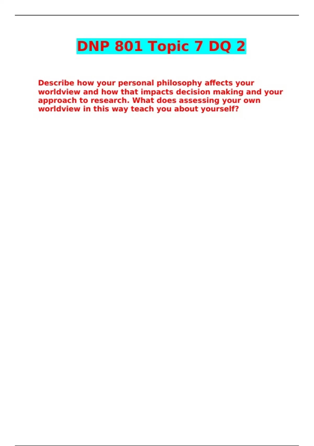 DNP 801 Topic 7 DQ 2 Correctly Answered /LATEST UPDATE VERSION/ GRADED A+
