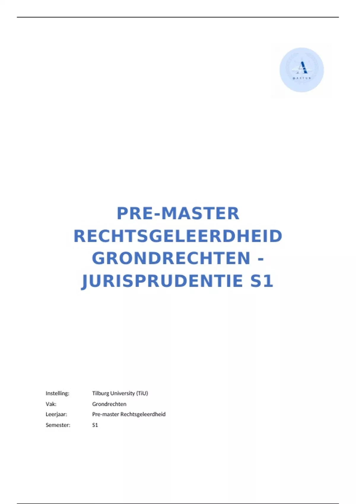 Leerjaar: Pre-master Rechtsgeleerdheid