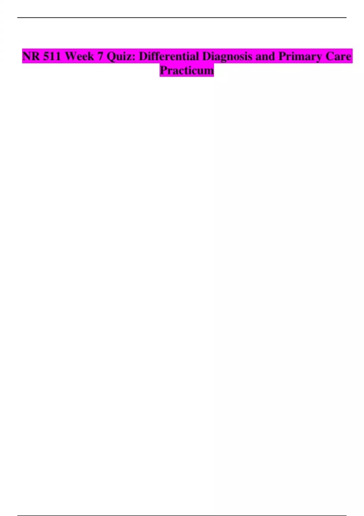 NR 511 Week 7 Quiz: Differential Diagnosis and Primary Care Practicum
