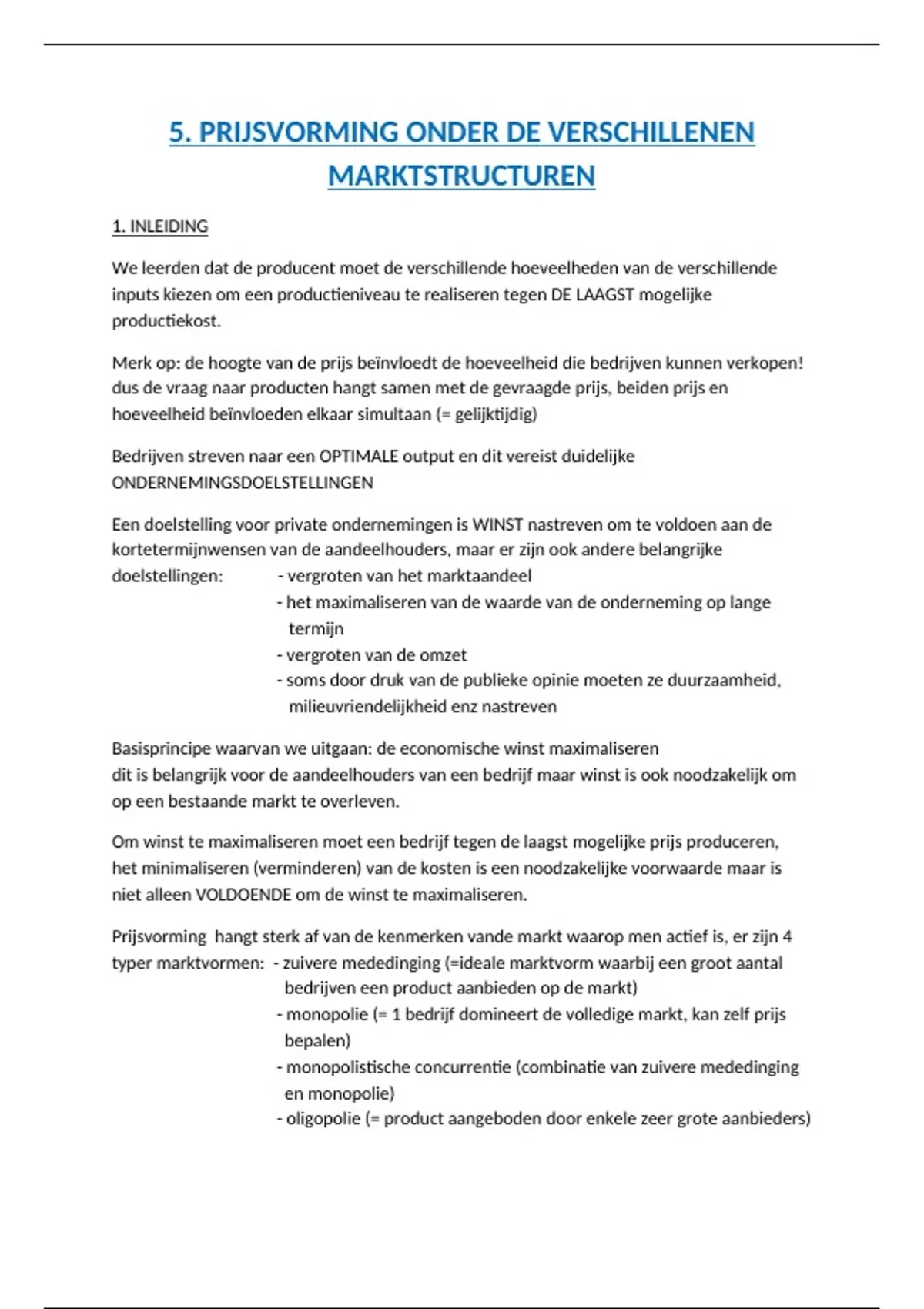 5. PRIJSVORMING ONDER DE VERSCHILLENEN