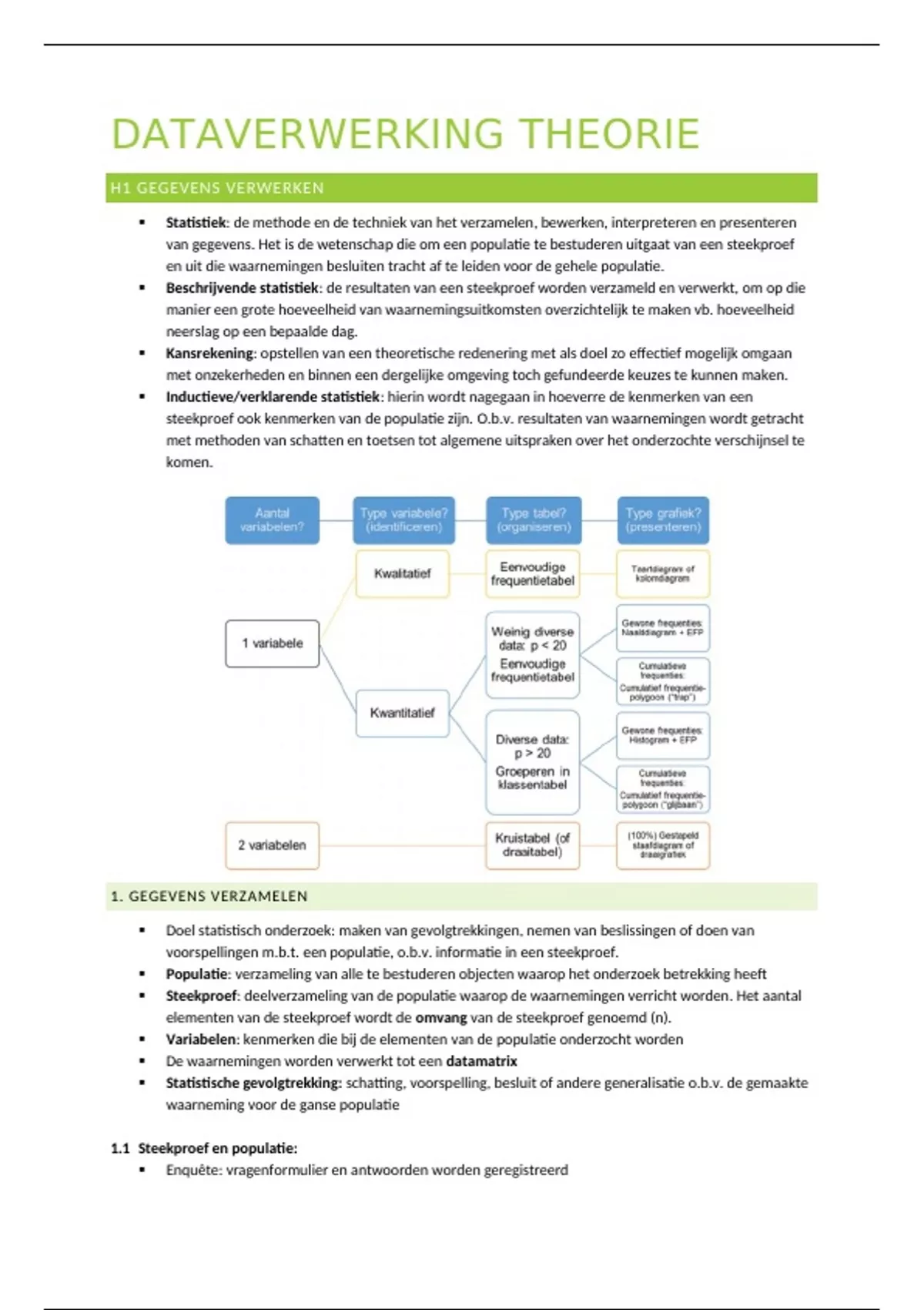 1.1 Steekproef en populatie: