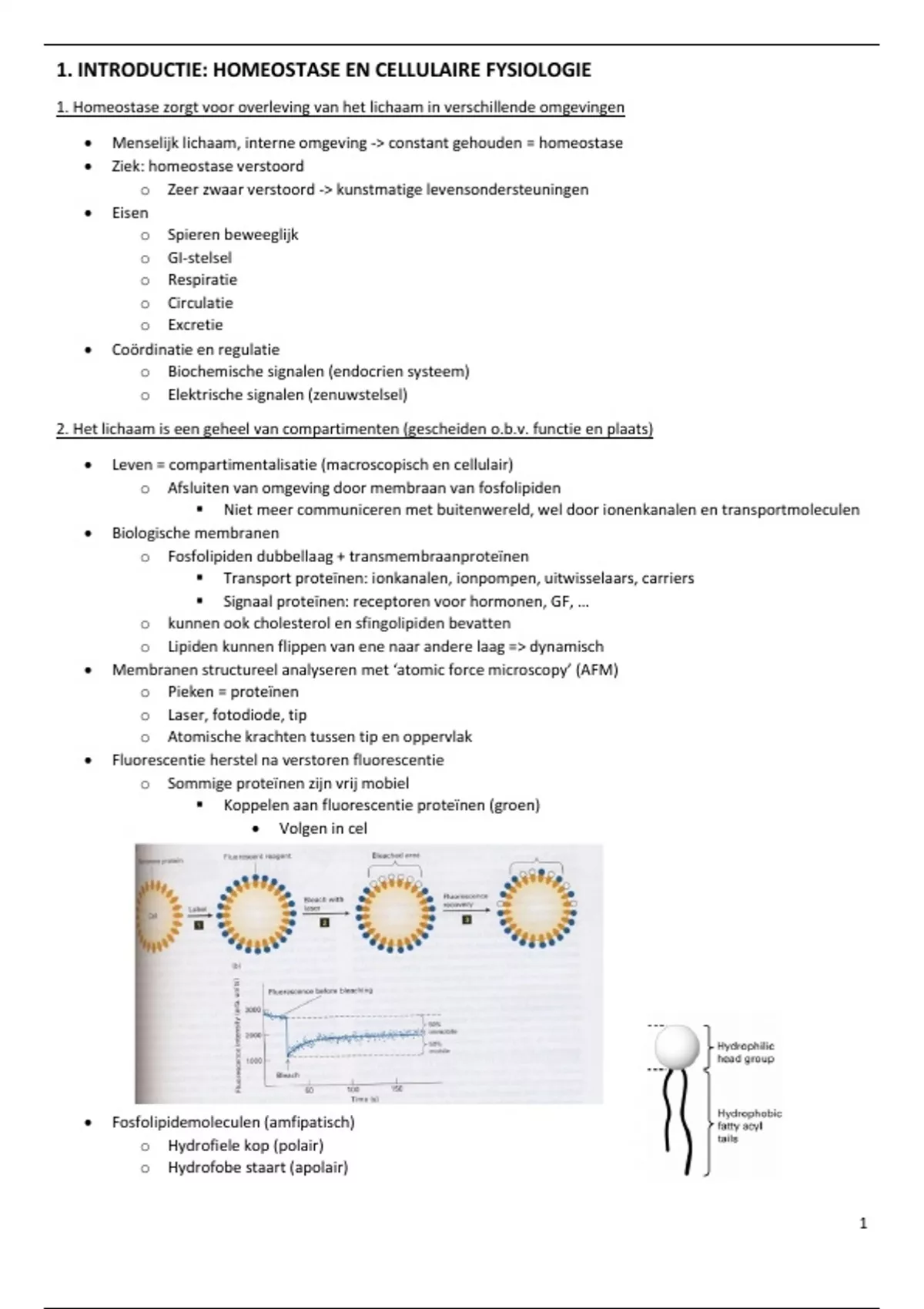 1. INTRODUCTIE: HOMEOSTASE EN CELLULAIRE FYSIOLOGIE