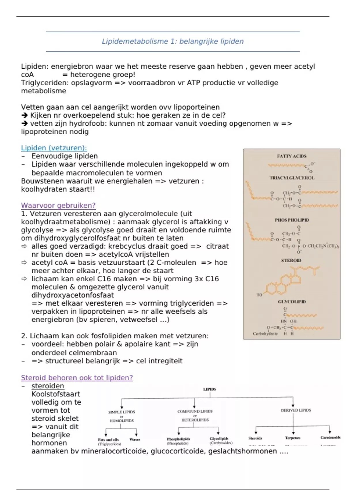 samenvatting lipidenmetabolisme (medische biochemie)