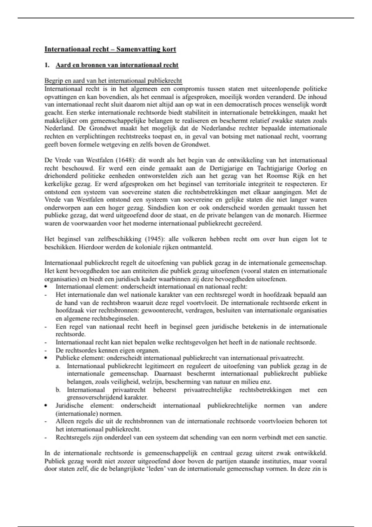 Internationaal Publiekrecht - Samenvatting kort