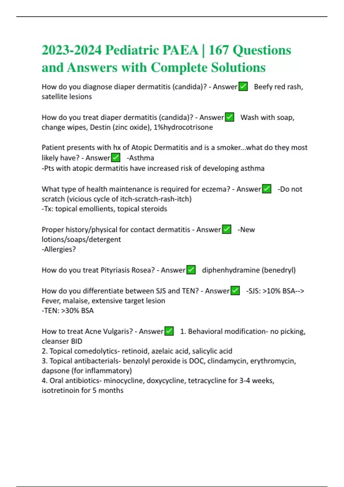 Pediatric PAEA | 167 Questions and Answers with Complete Solutions