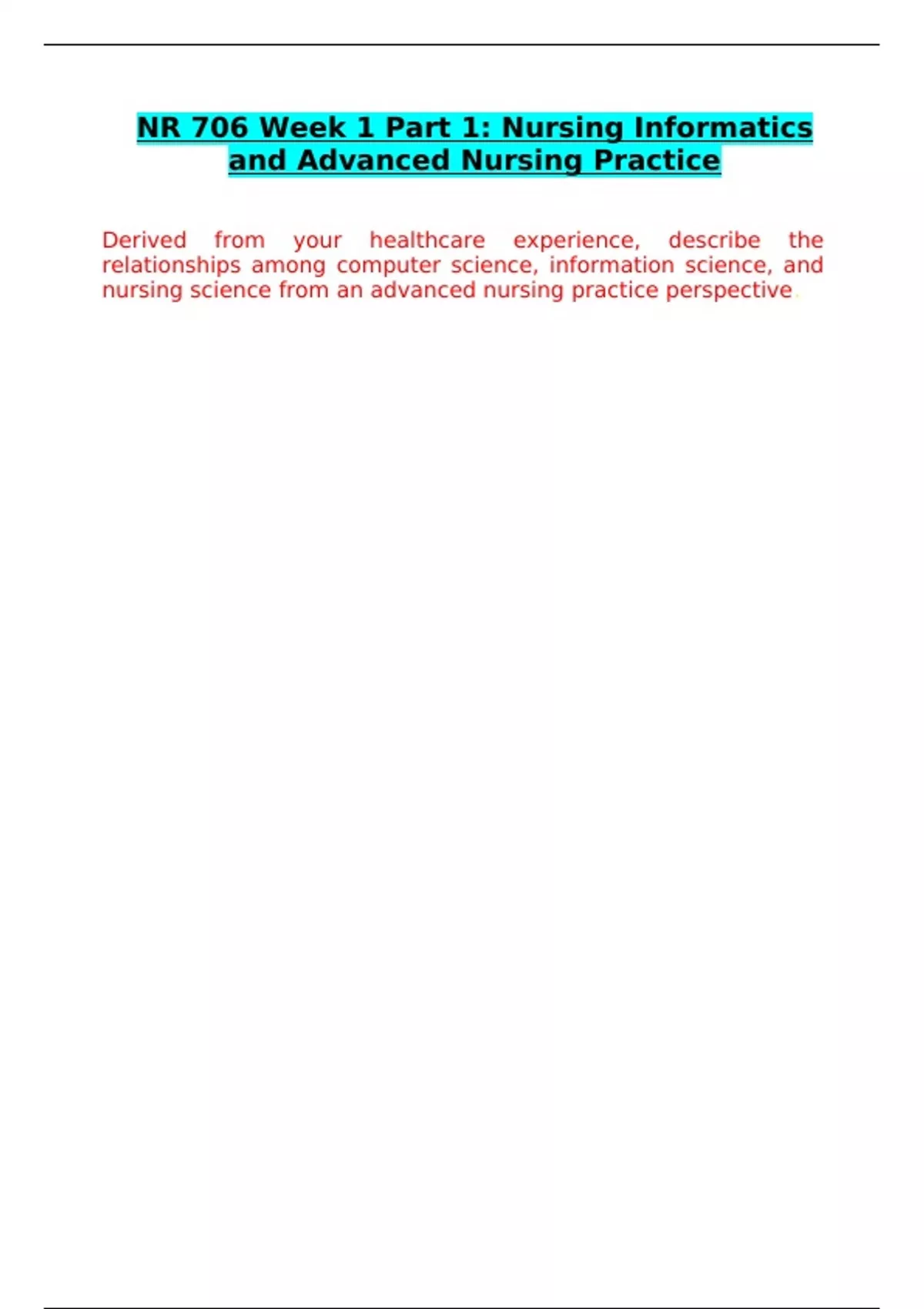 NR 706 WEEK 1 PART 1 CORRECTLY ANSWERED /LATEST UPDATE VERSION/ GRADED A+