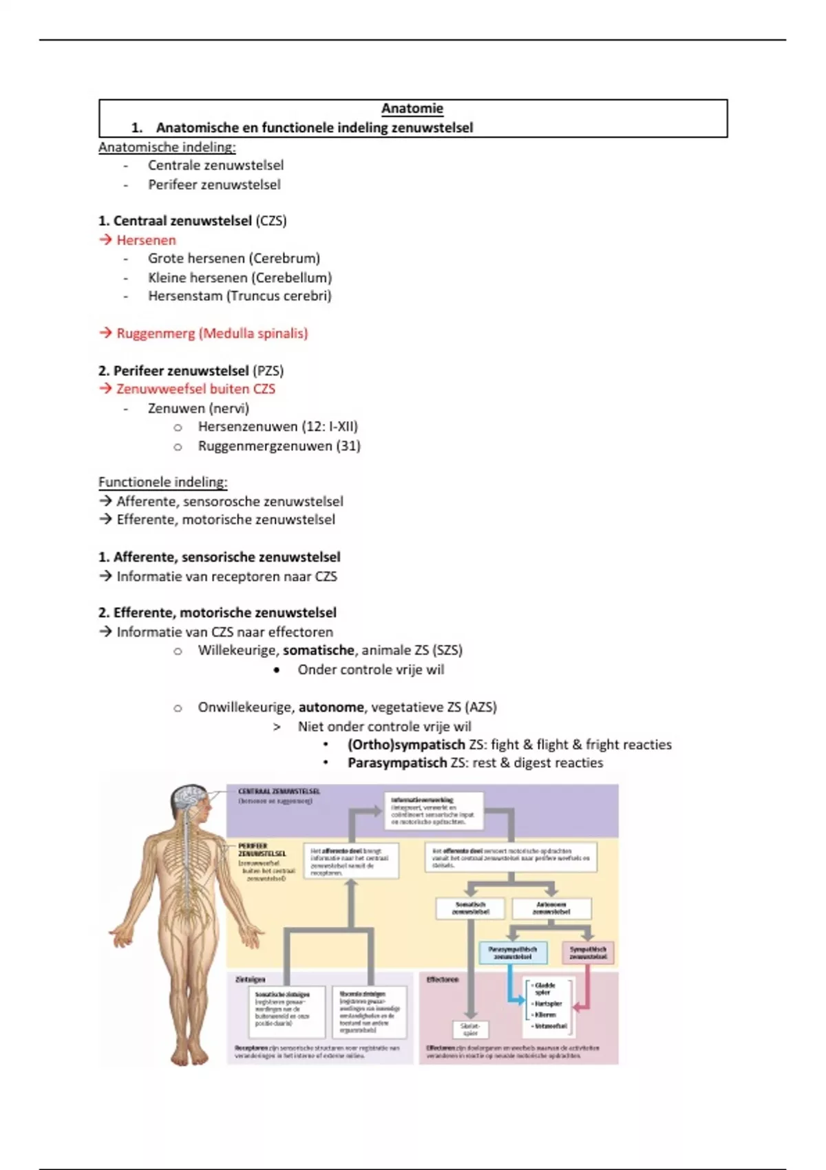 1. Anatomische en functionele indeling zenuwstelsel