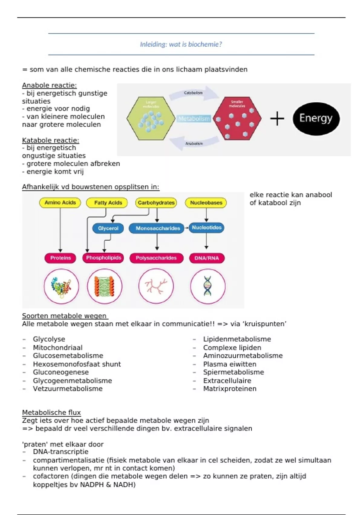- Glucosemetabolisme - Aminozuurmetabolisme