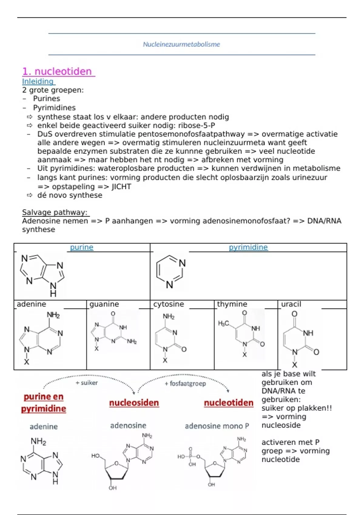 samenvatting nucleinezuurmetabolisme (medische biochemie)