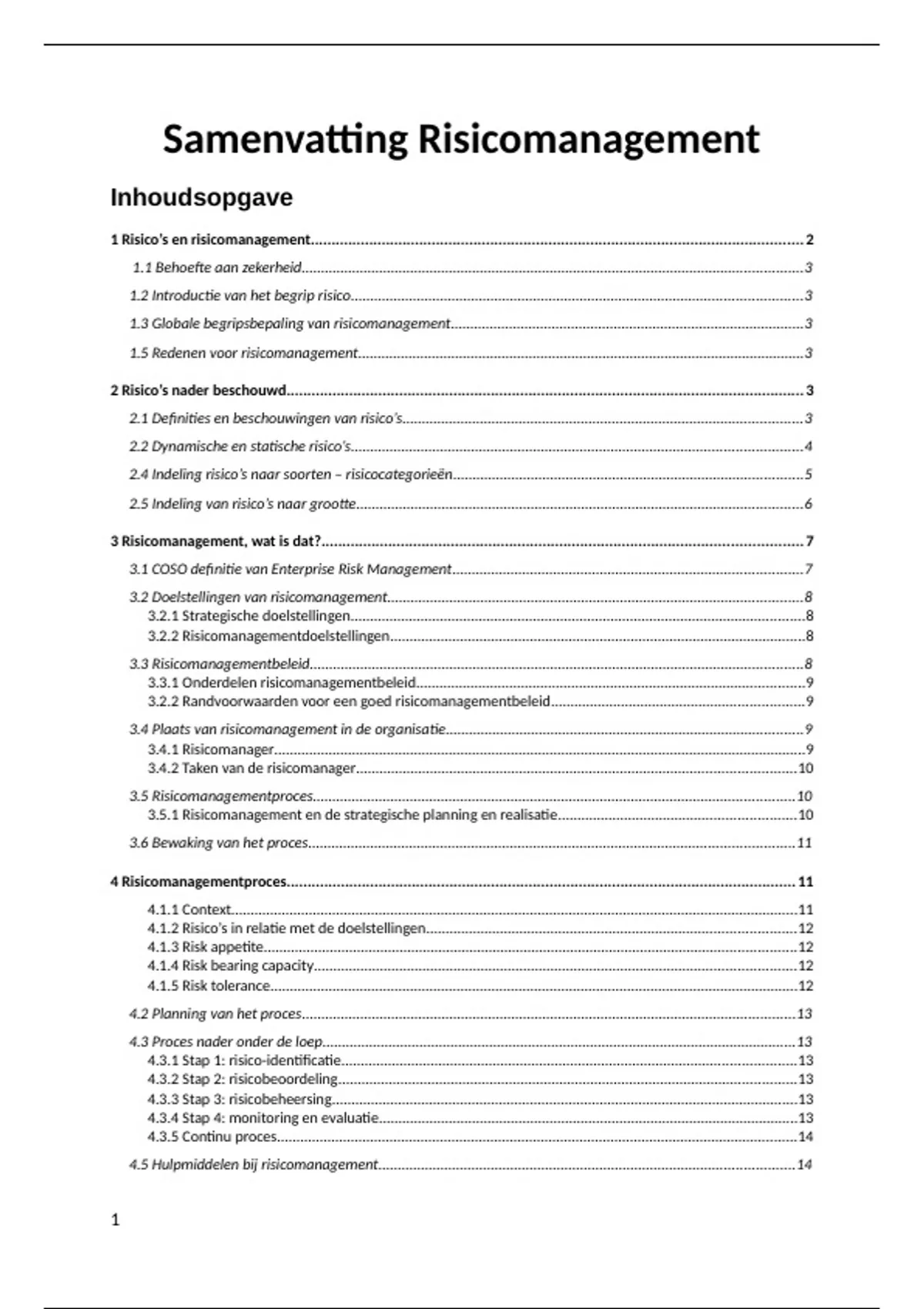 1 Risico’s en risicomanagement...................................................................................................................... 2