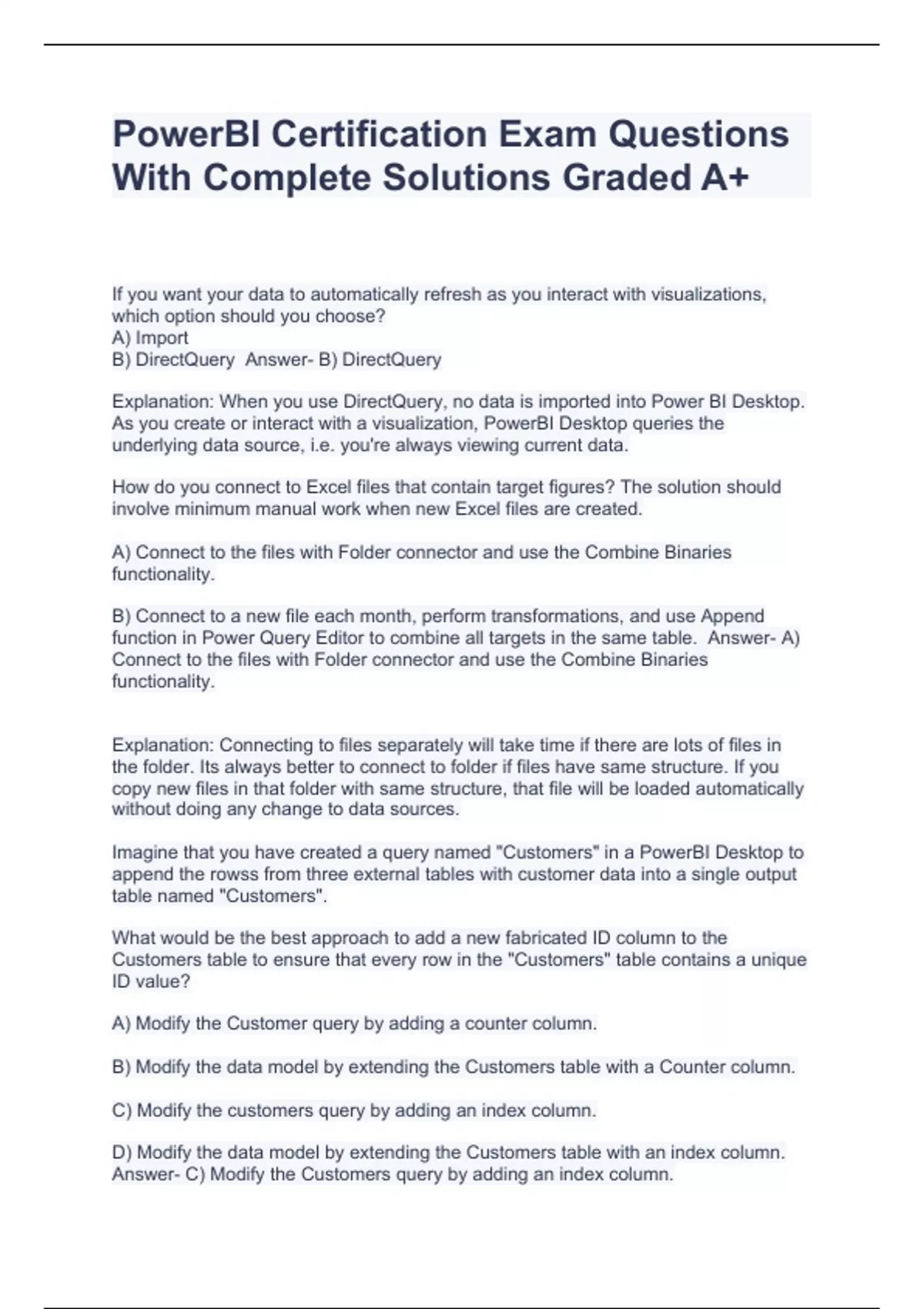 PowerBI Certification Exam Questions With Complete Solutions Graded A+