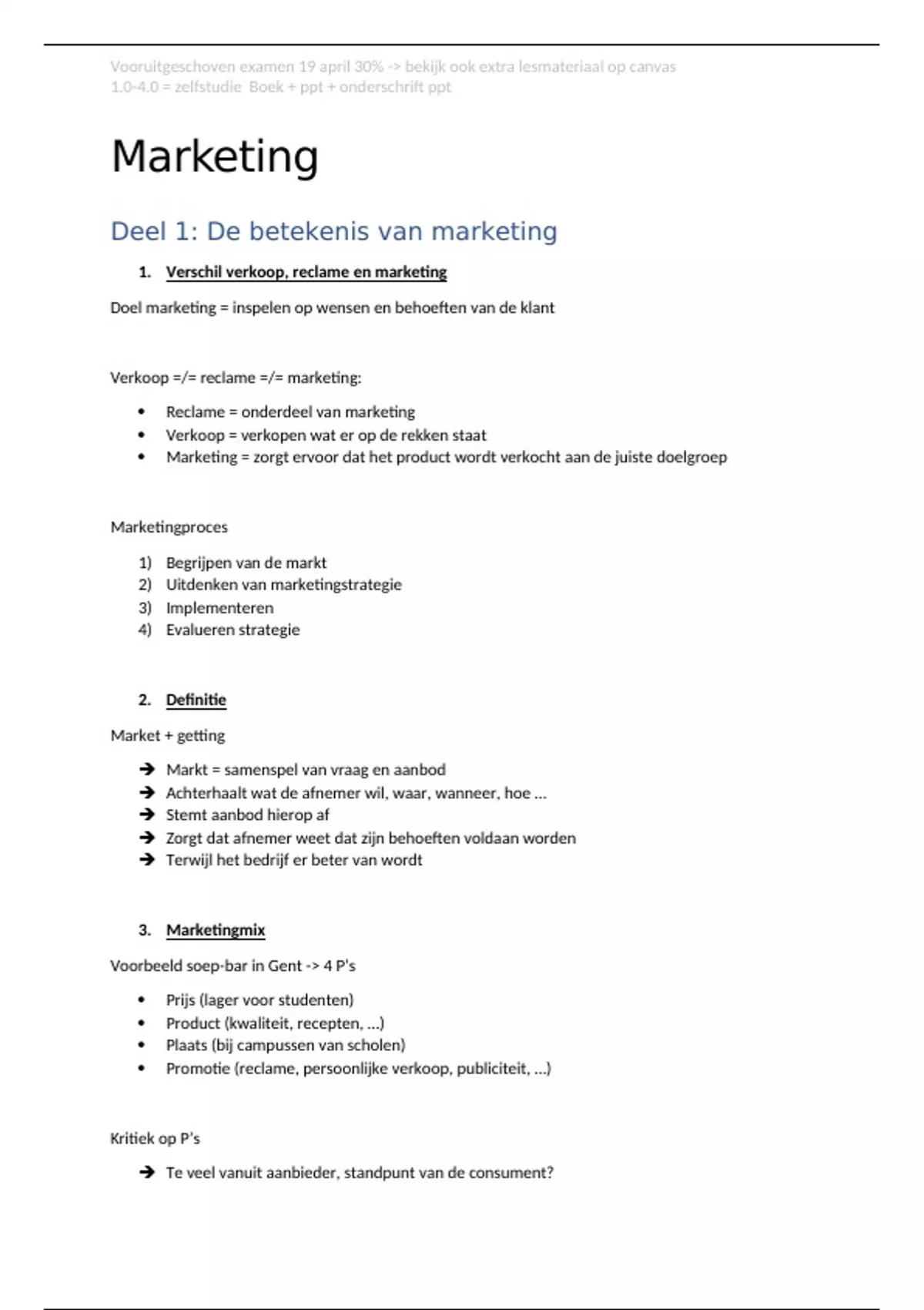 , Vooruitgeschoven examen 19 april 30% -> bekijk ook extra lesmateriaal op canvas